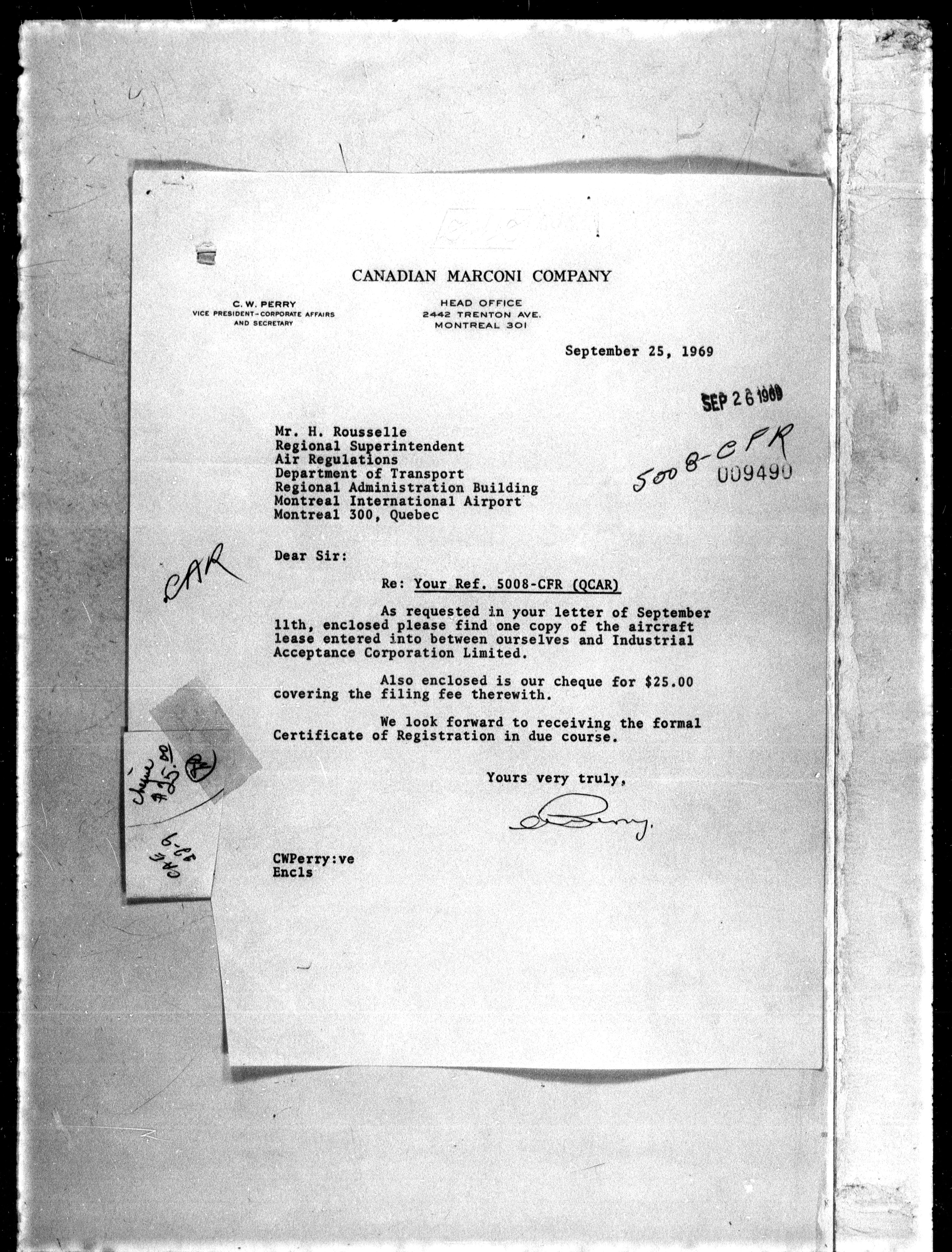 Department of Transport : Civil aircraft registration, inspection and operation files, block 5008, 1920-1986 - 7263