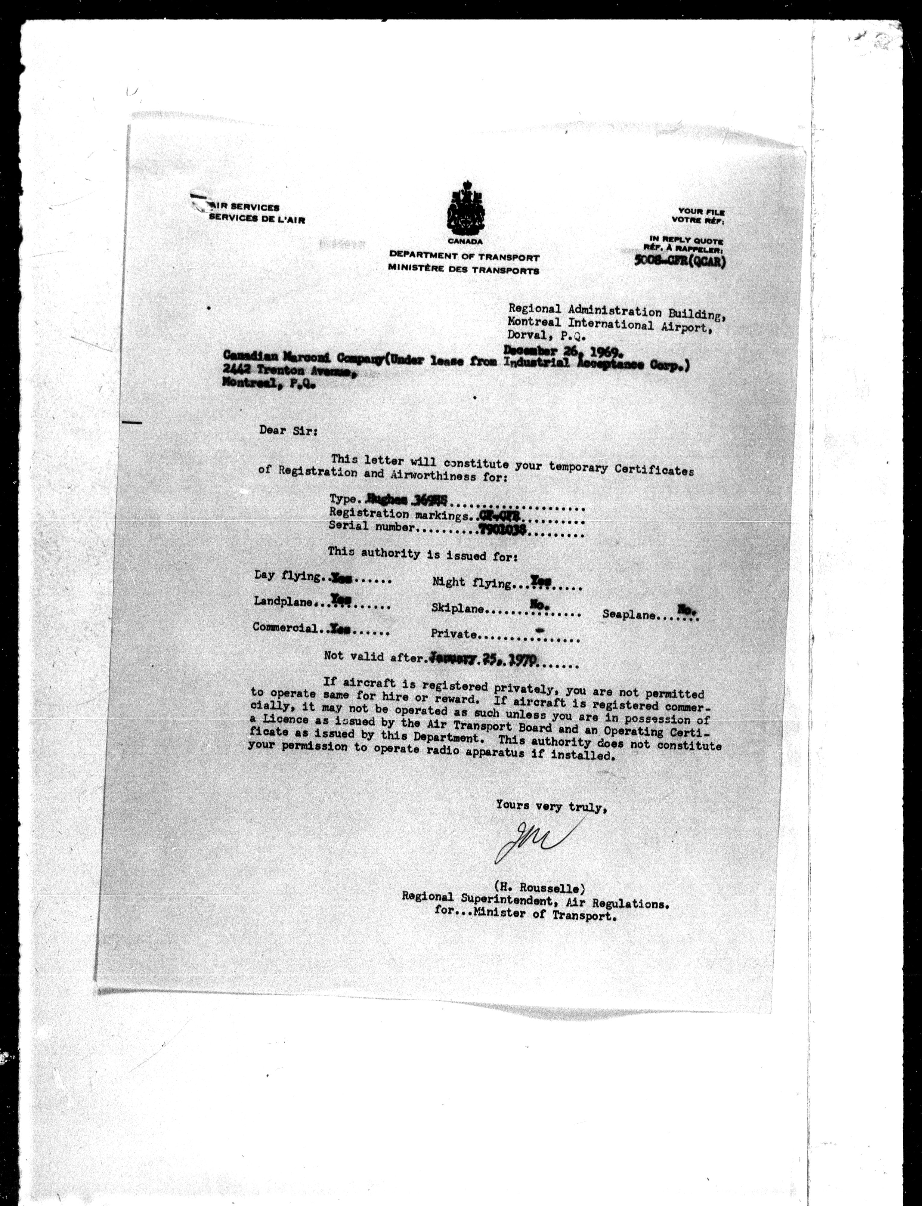 Department of Transport : Civil aircraft registration, inspection and operation files, 1920-1986 : T-7263