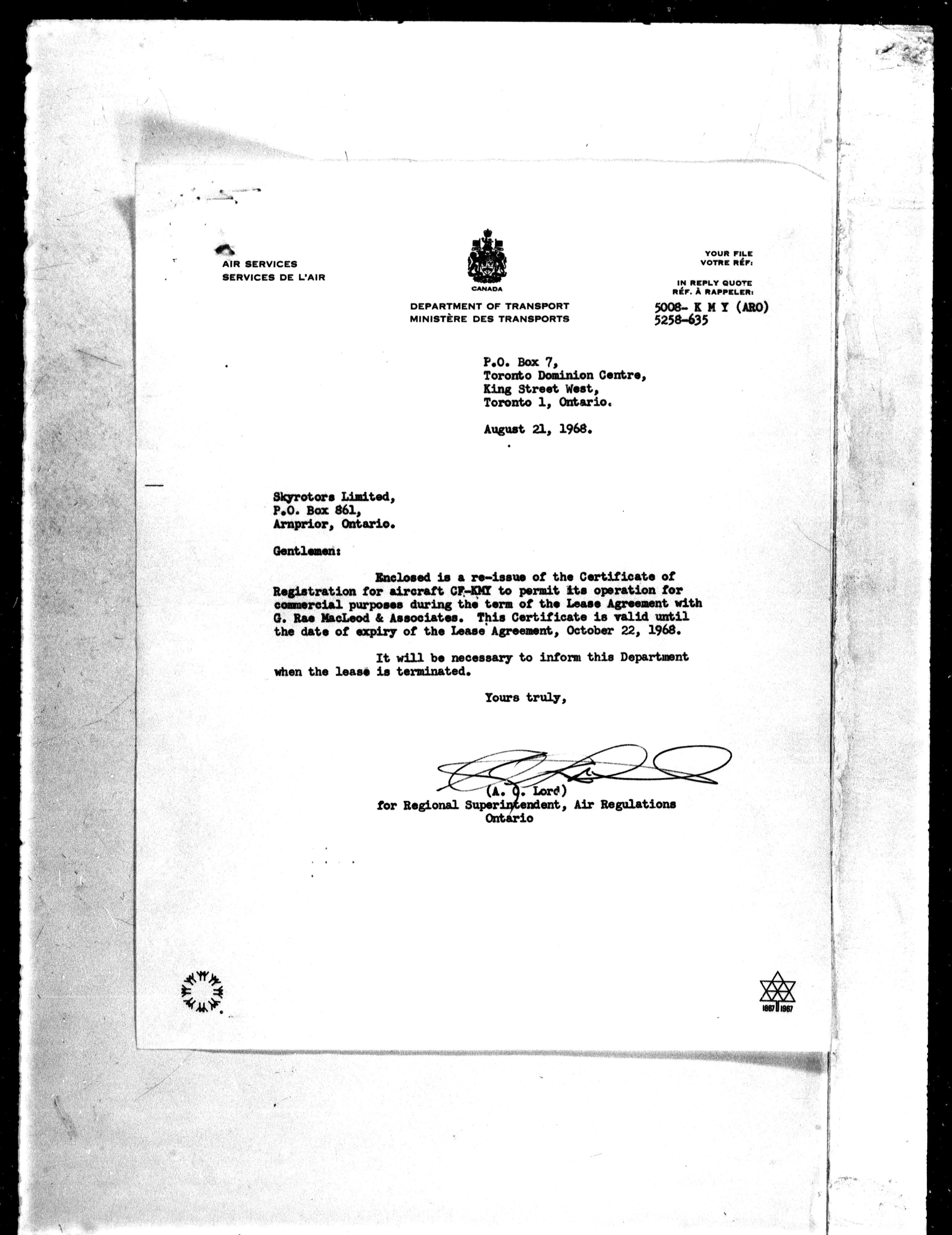 Department of Transport : Civil aircraft registration, inspection and operation files, block 5008, 1920-1986 - 7270