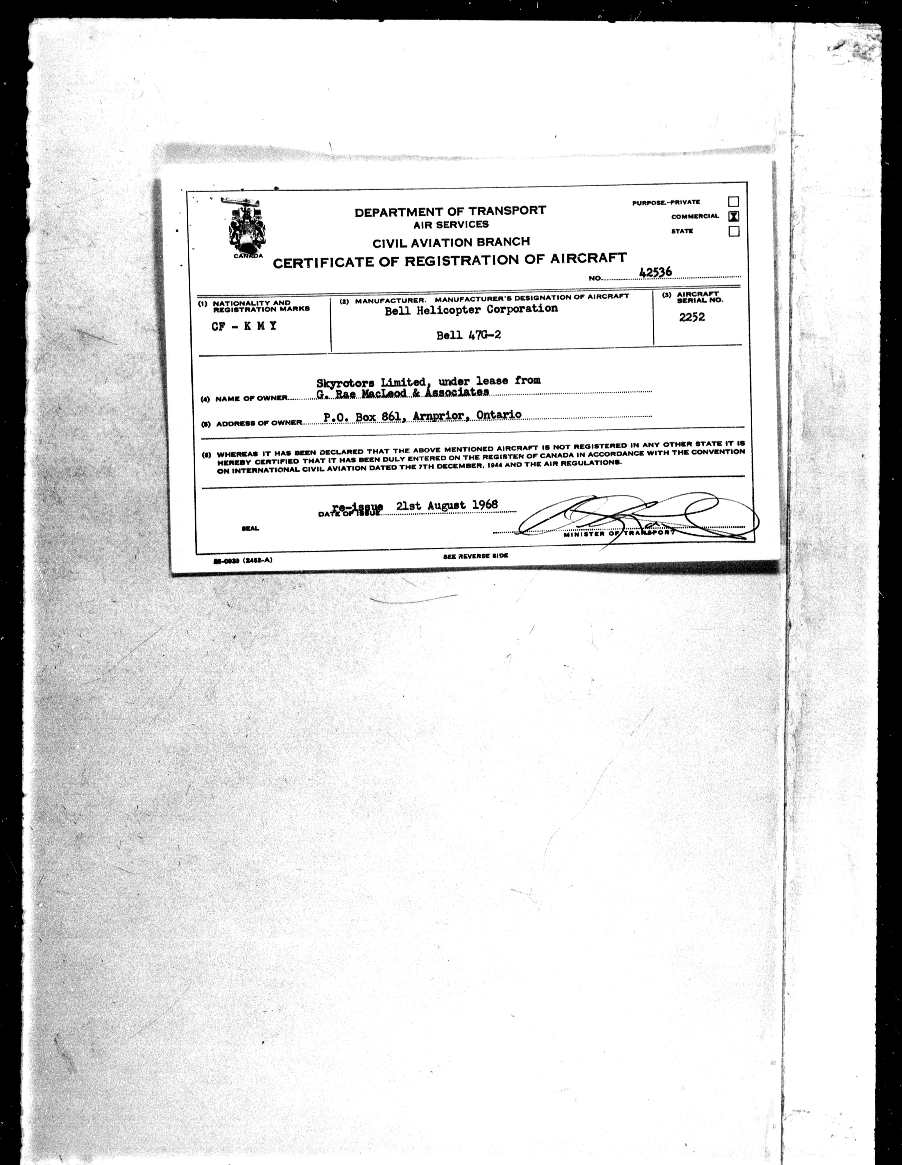 Department of Transport : Civil aircraft registration, inspection and operation files, block 5008, 1920-1986 - 7270