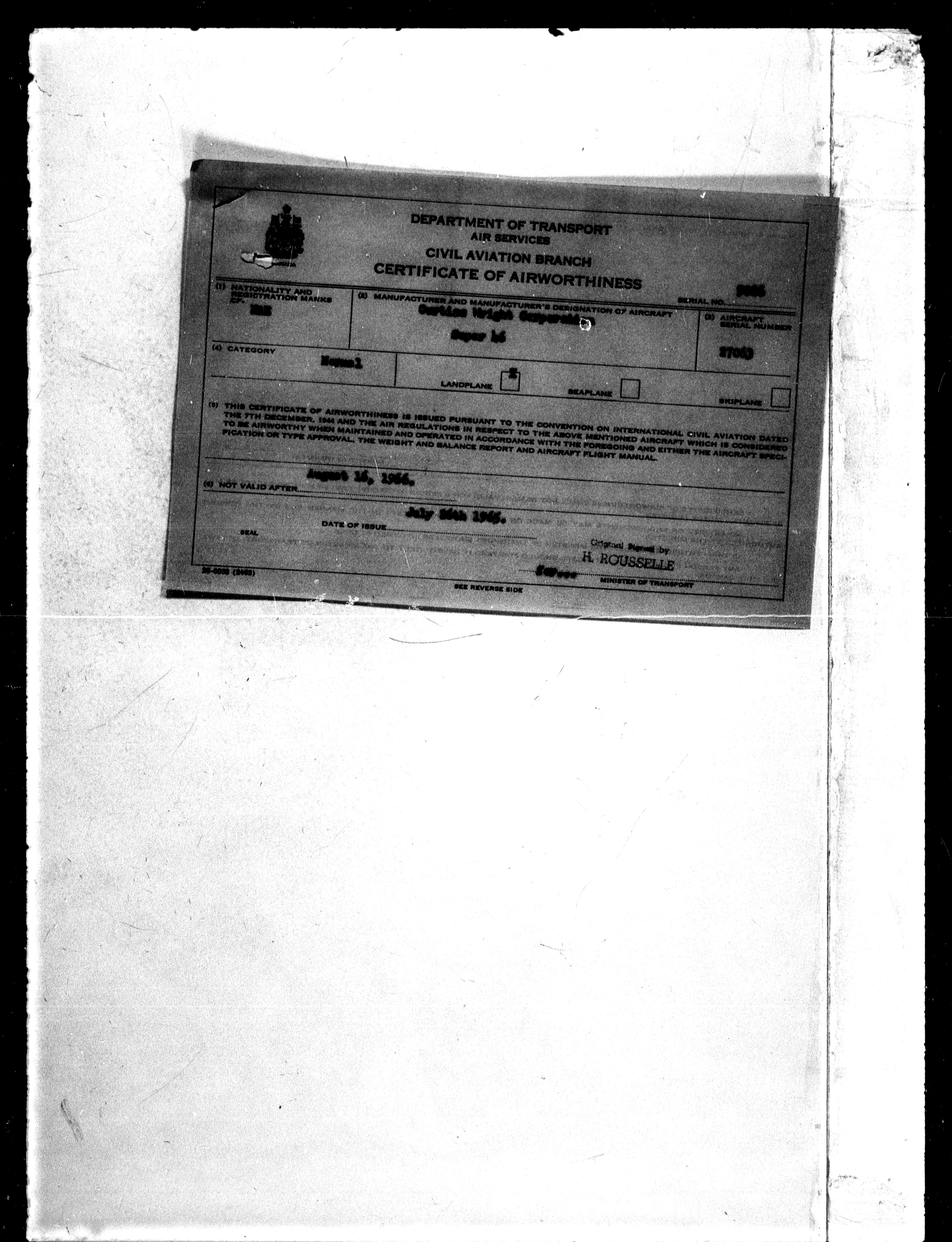 Department of Transport : Civil aircraft registration, inspection and operation files, block 5008, 1920-1986 - 7272