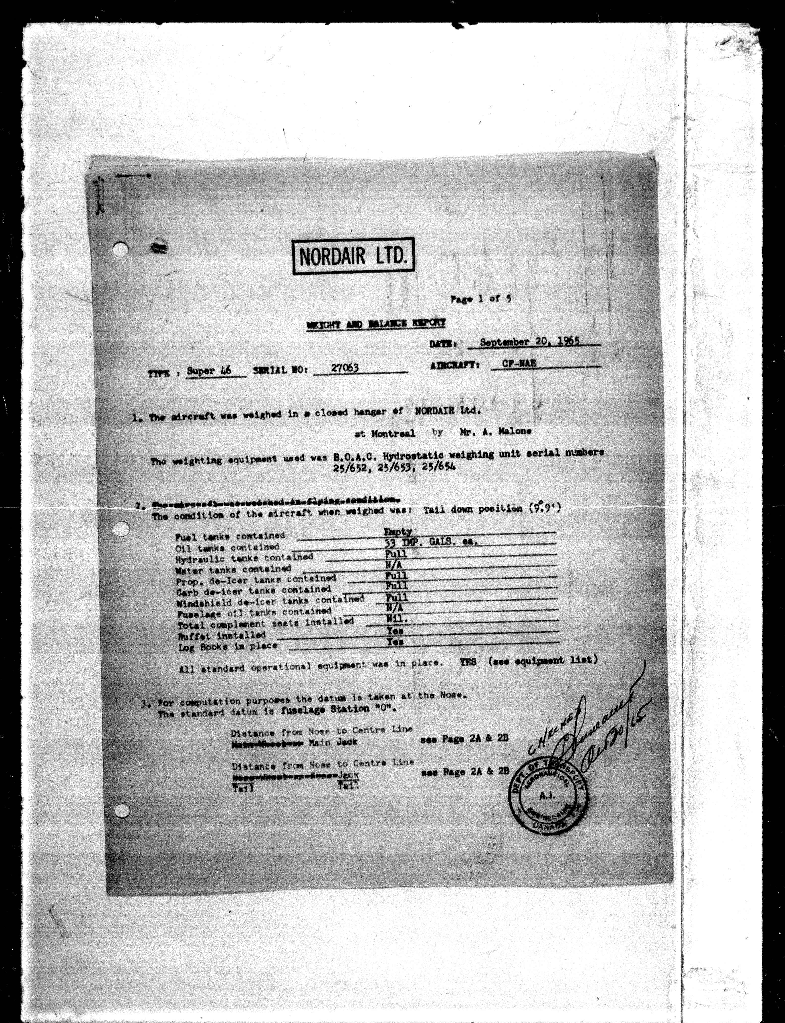 Department of Transport : Civil aircraft registration, inspection and operation files, block 5008, 1920-1986 - 7272