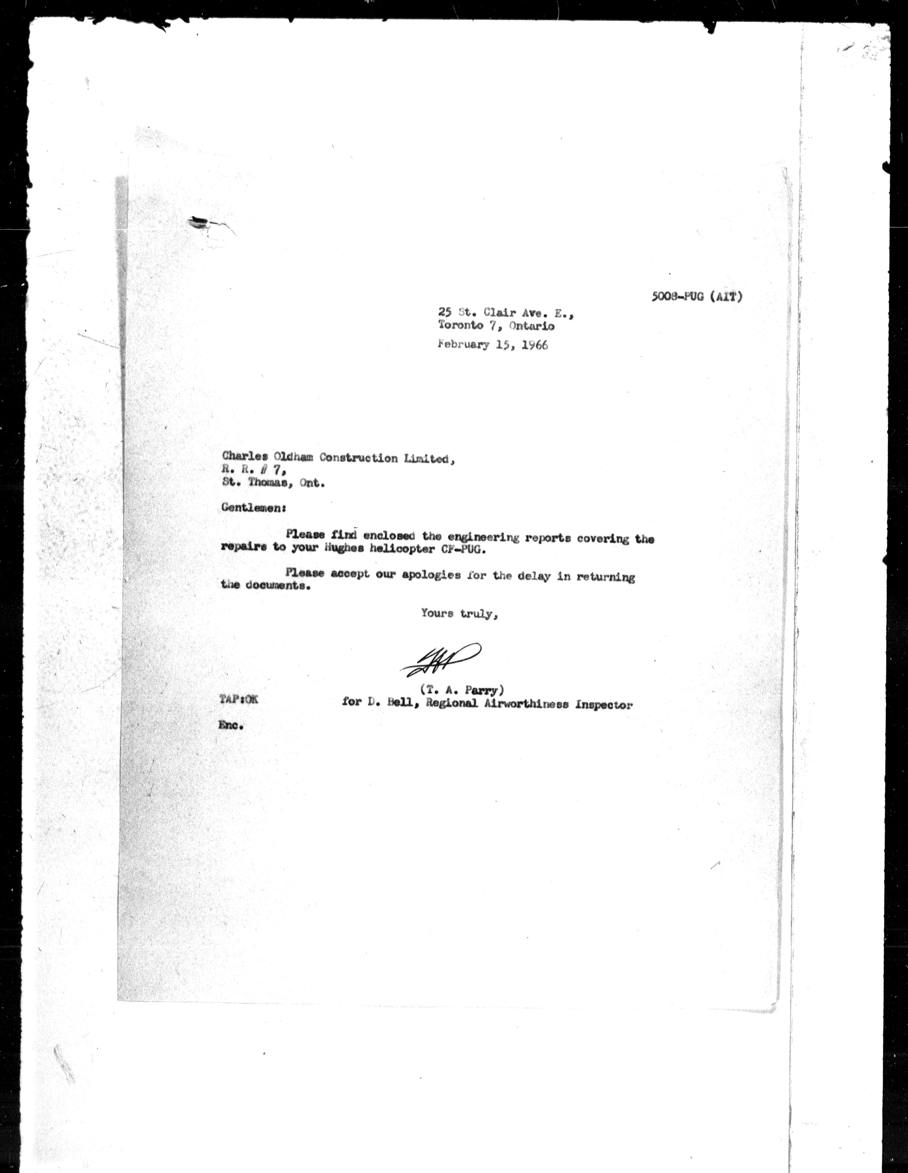 Department of Transport : Civil aircraft registration, inspection and operation files, block 5008, 1920-1986 - 7274