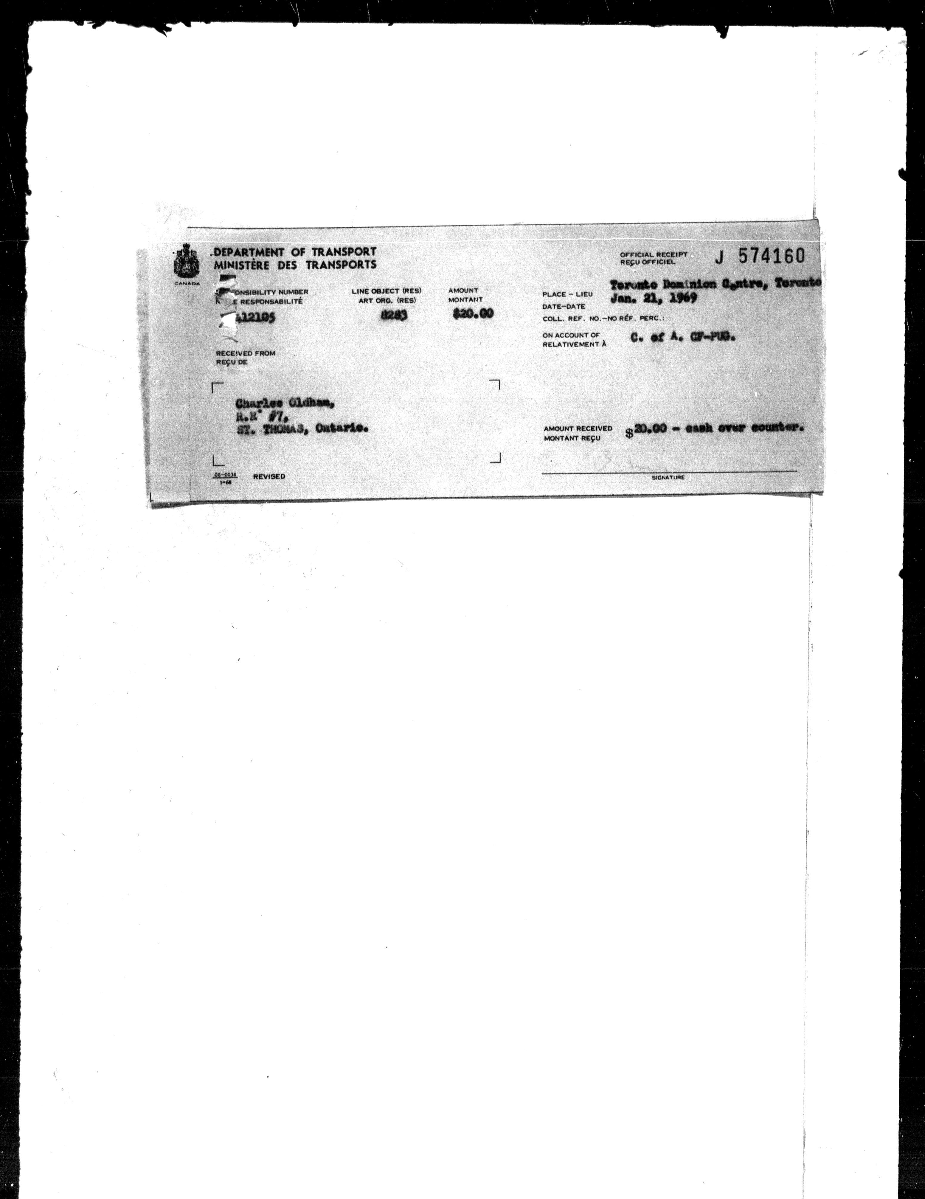Department of Transport : Civil aircraft registration, inspection and operation files, block 5008, 1920-1986 - 7274