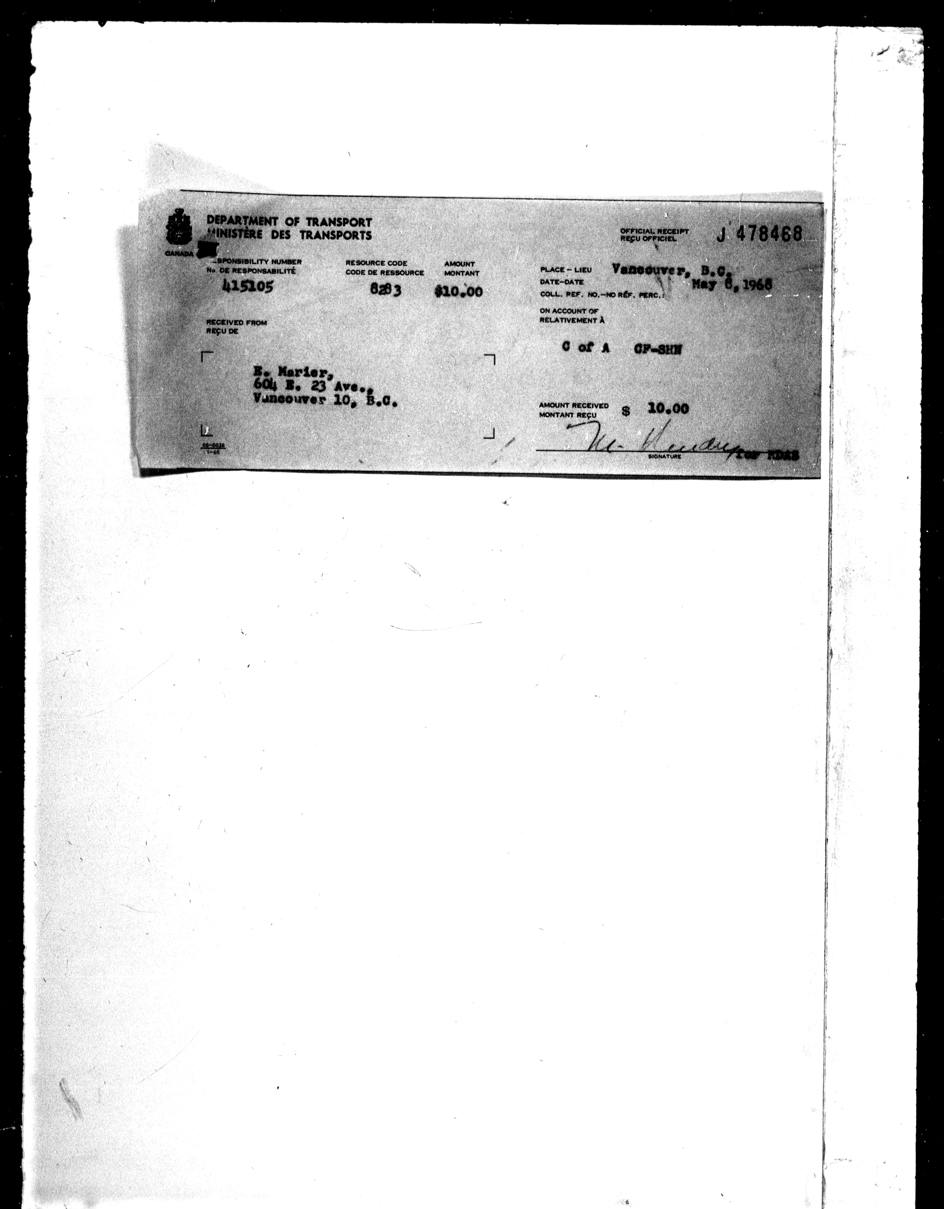 Department of Transport : Civil aircraft registration, inspection and operation files, block 5008, 1920-1986 - 7276