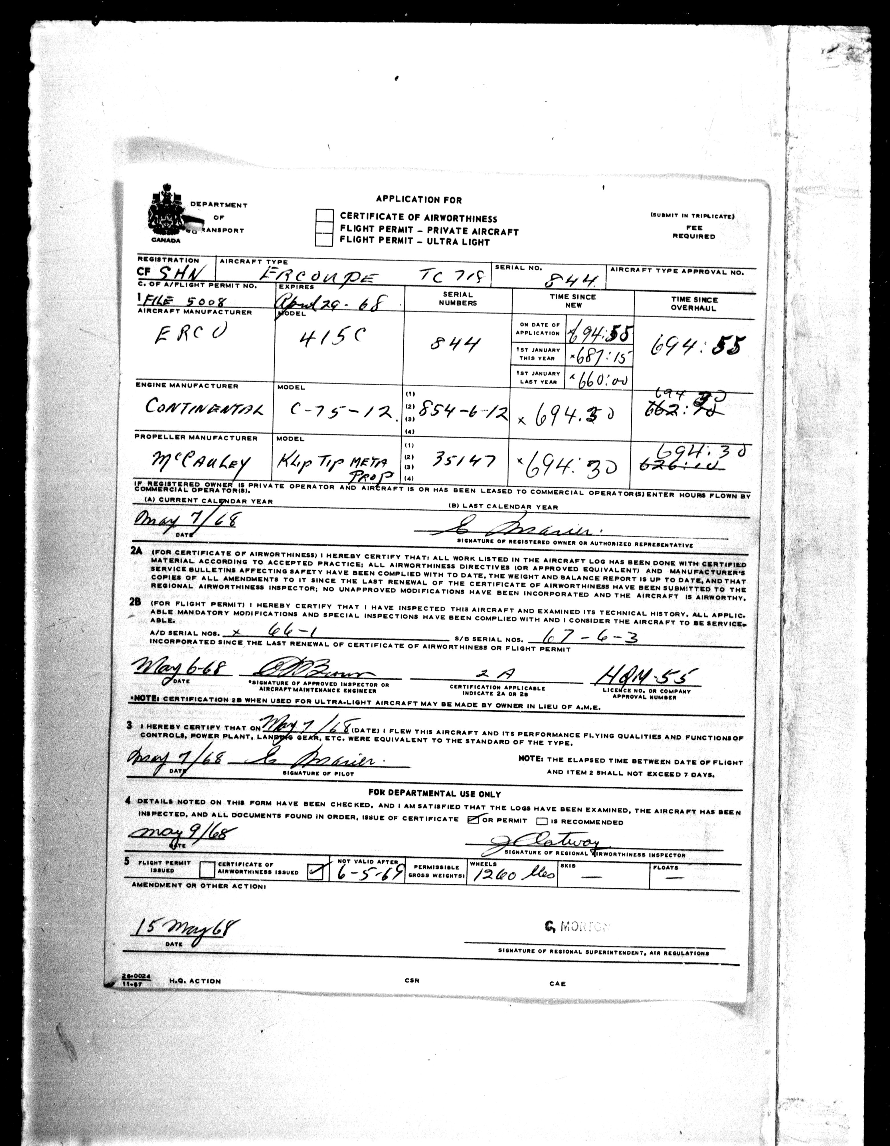 Department of Transport : Civil aircraft registration, inspection and operation files, block 5008, 1920-1986 - 7276
