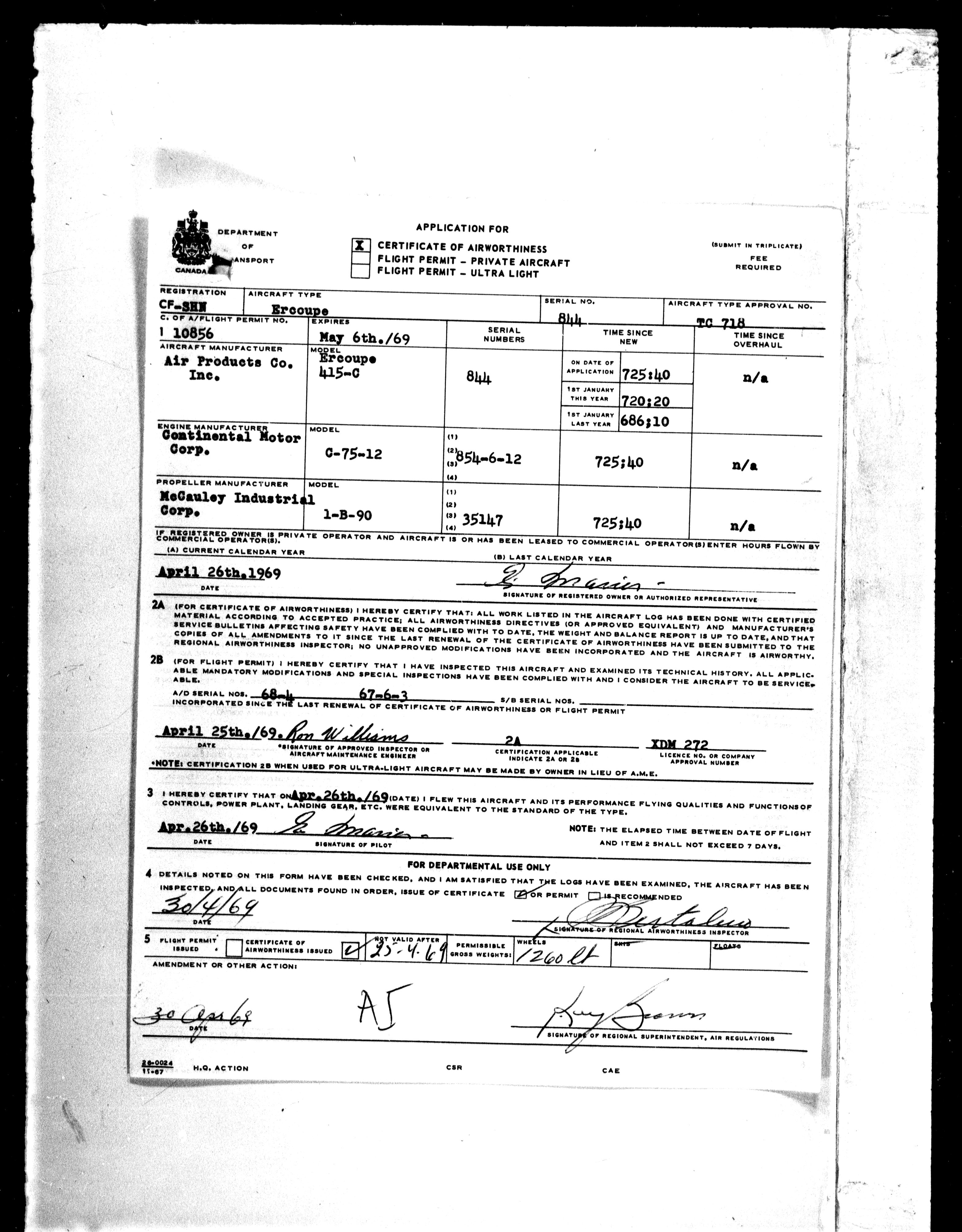 Department of Transport : Civil aircraft registration, inspection and operation files, block 5008, 1920-1986 - 7276
