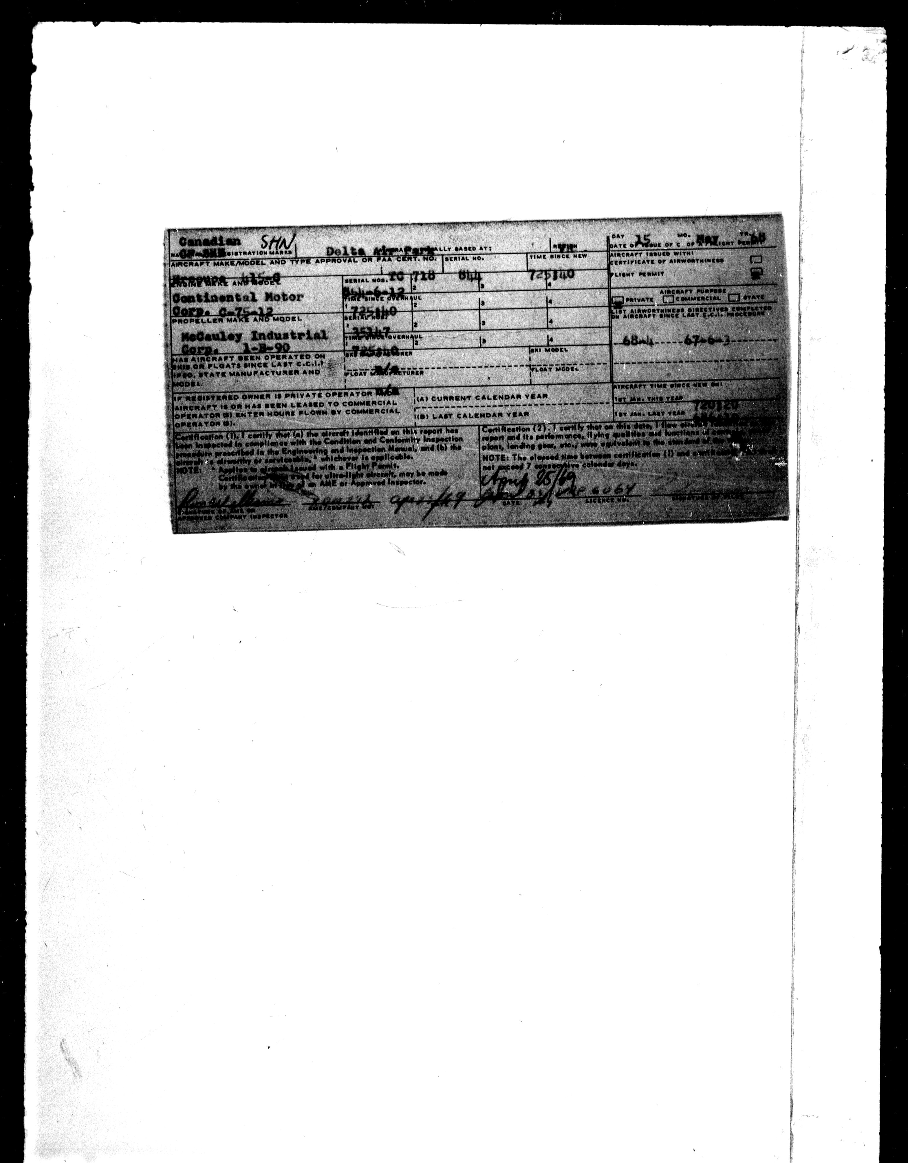 Department of Transport : Civil aircraft registration, inspection and operation files, block 5008, 1920-1986 - 7276