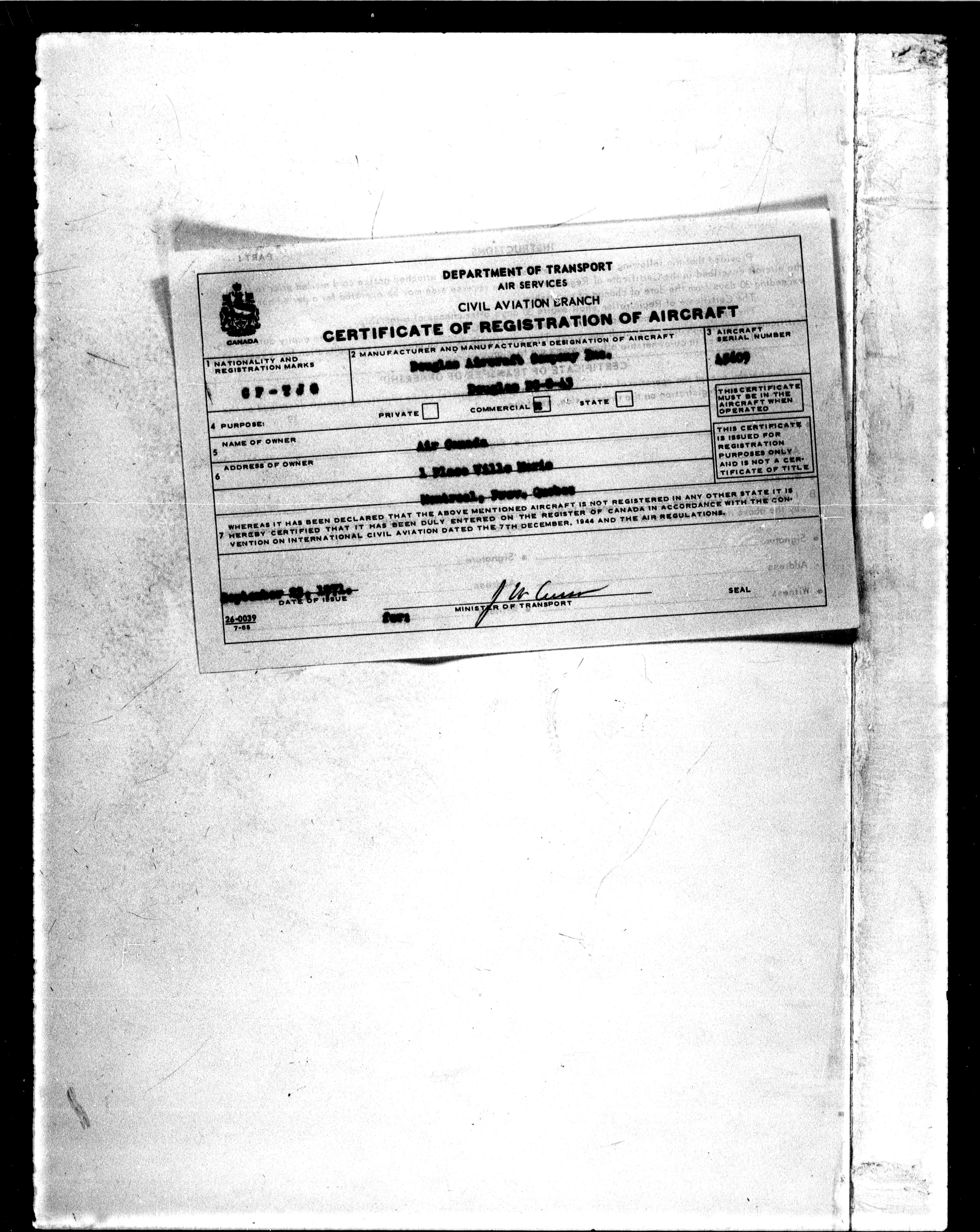 Department of Transport : Civil aircraft registration, inspection and operation files, 1920-1986 : T-7277