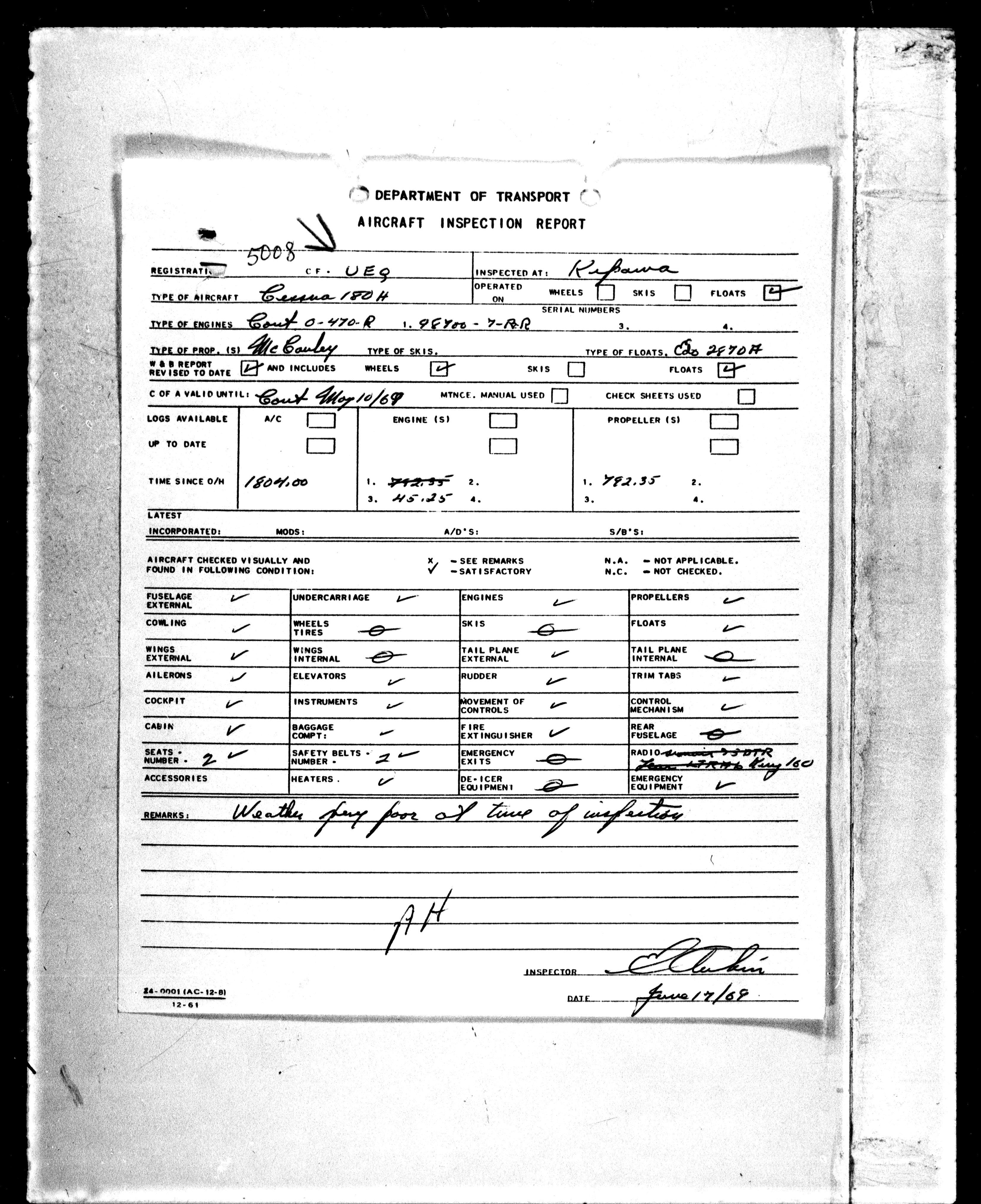 Department of Transport : Civil aircraft registration, inspection and operation files, block 5008, 1920-1986 - 7279