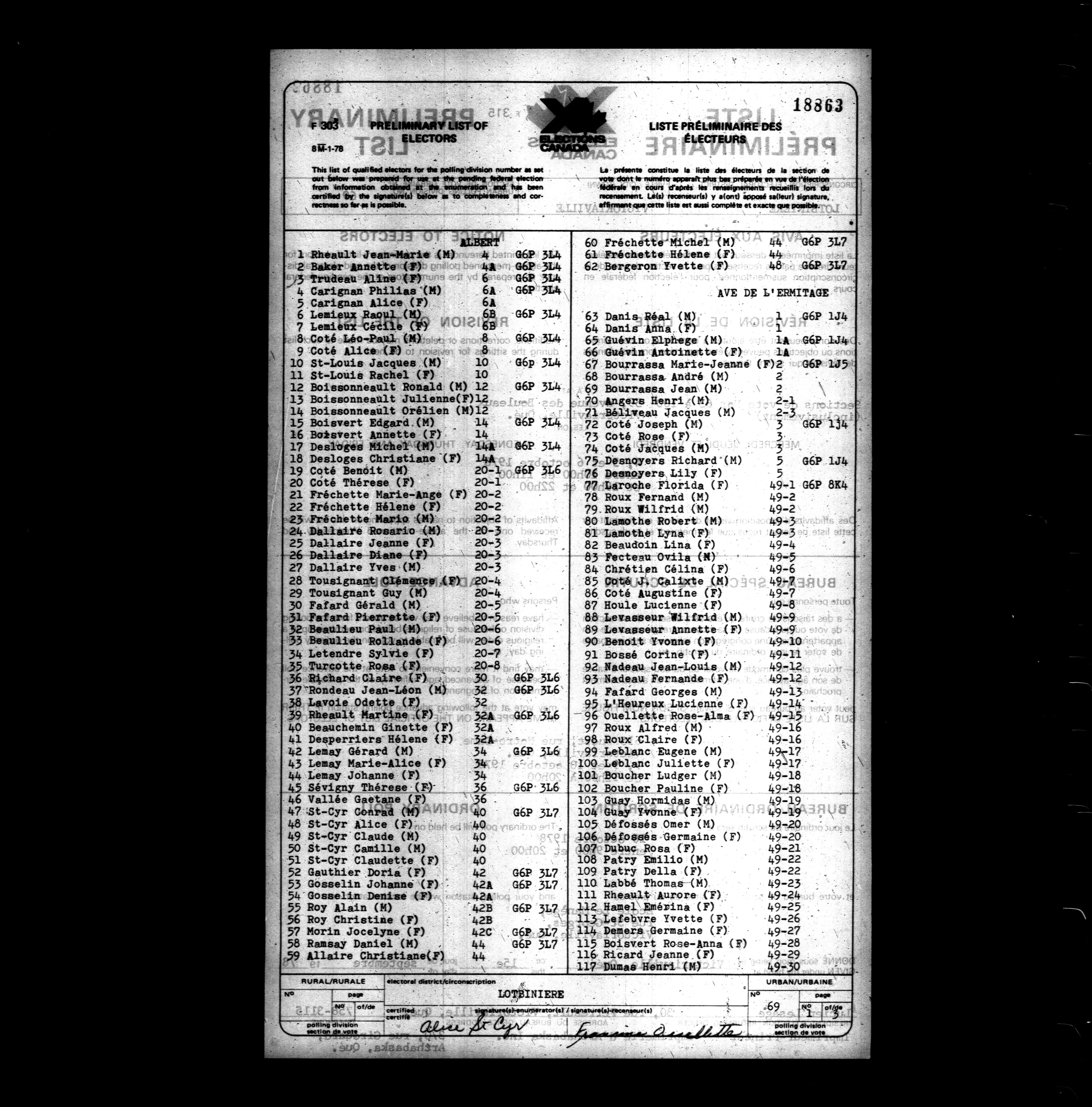 Voters' lists Québec, 1979 - 728