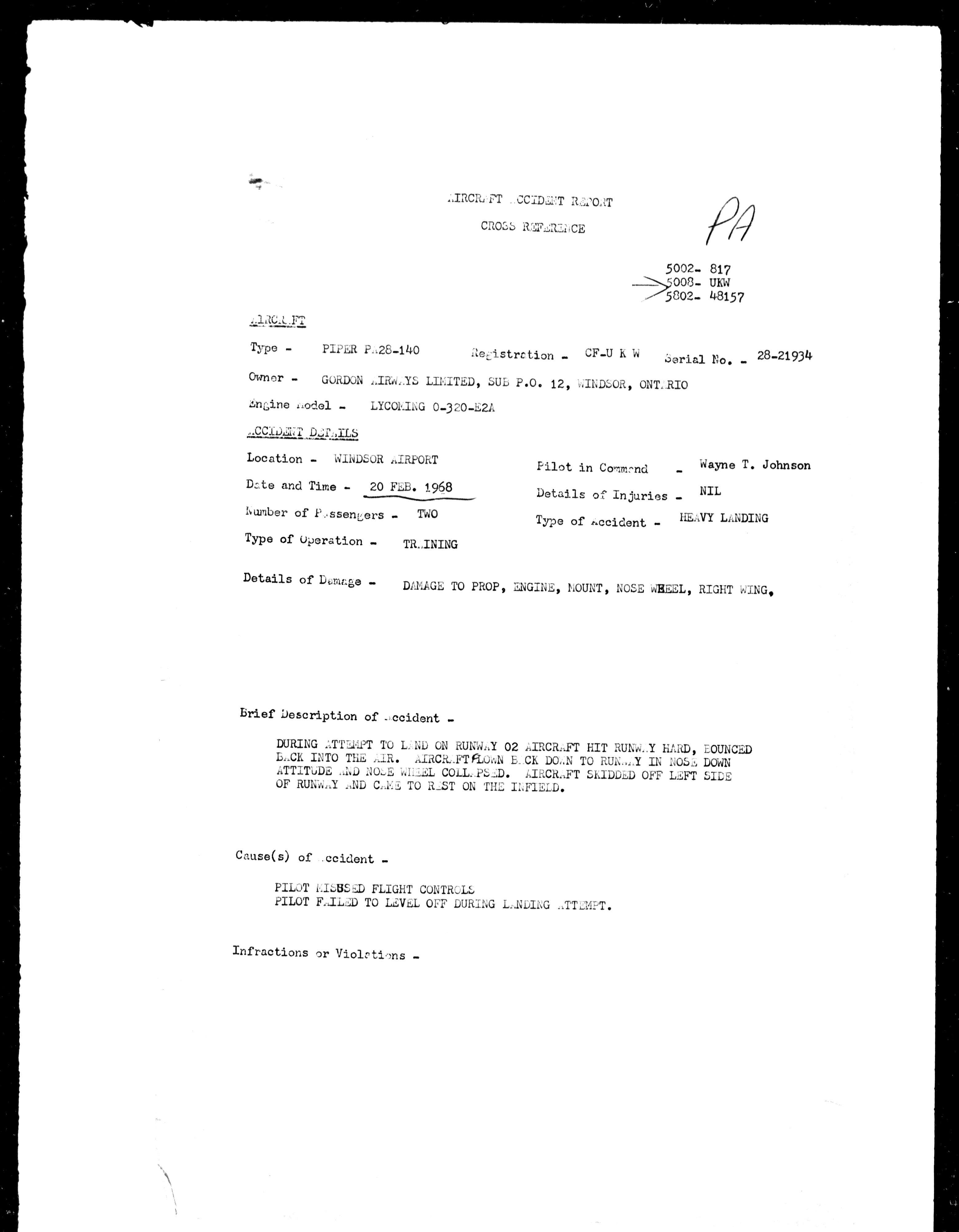 Department of Transport : Civil aircraft registration, inspection and operation files, block 5008, 1920-1986 - 7280