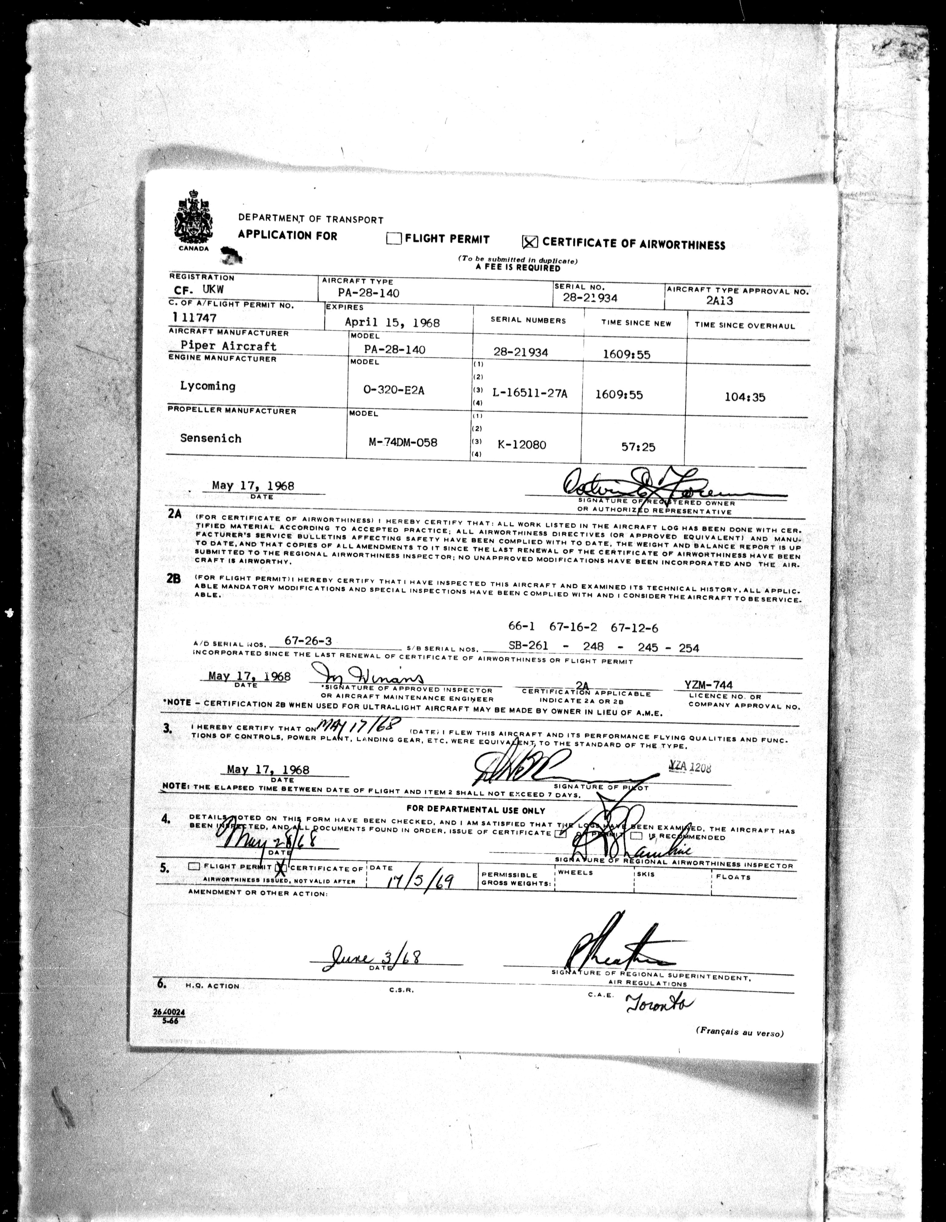 Department of Transport : Civil aircraft registration, inspection and operation files, block 5008, 1920-1986 - 7280