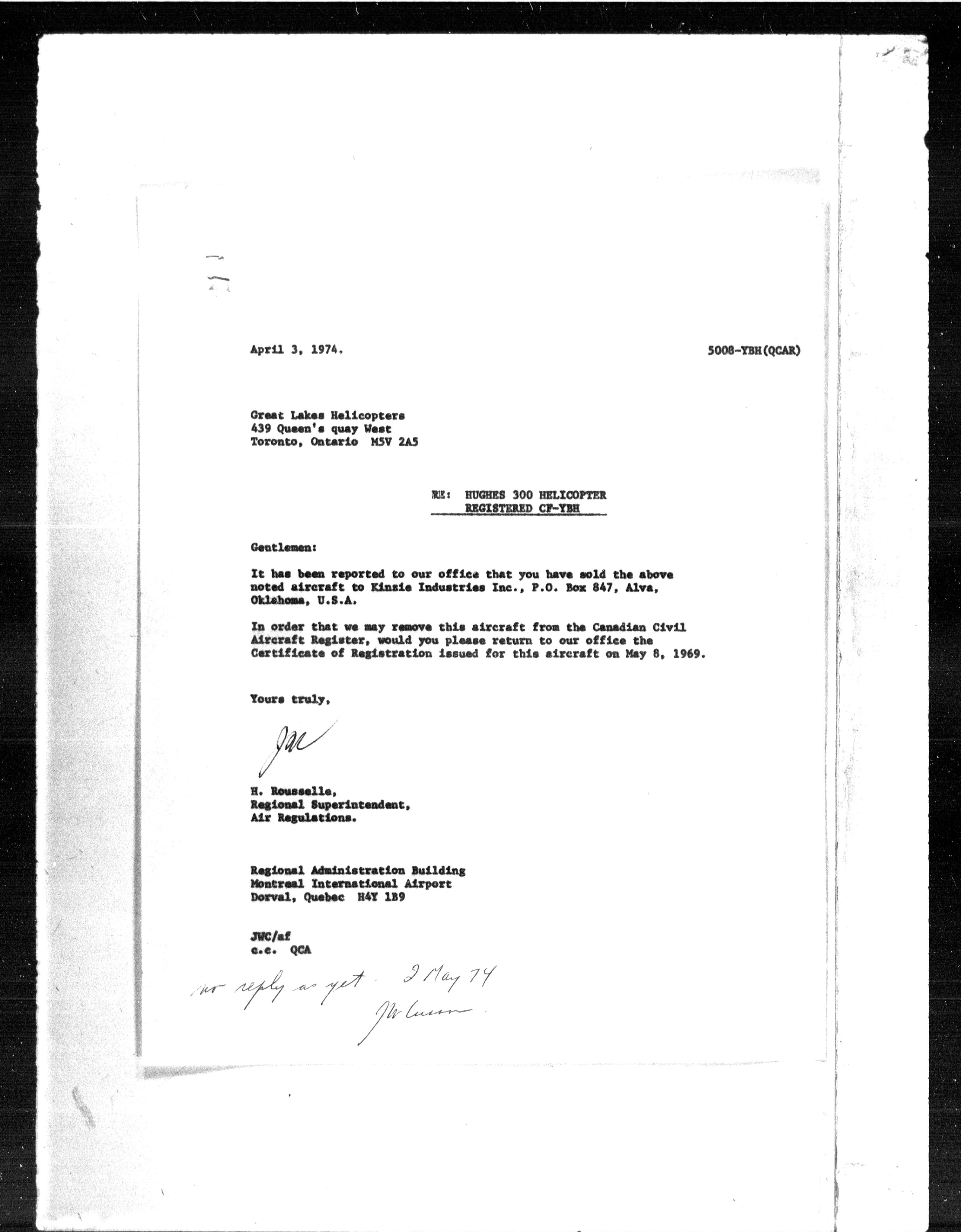 Department of Transport : Civil aircraft registration, inspection and operation files, block 5008, 1920-1986 - 7282