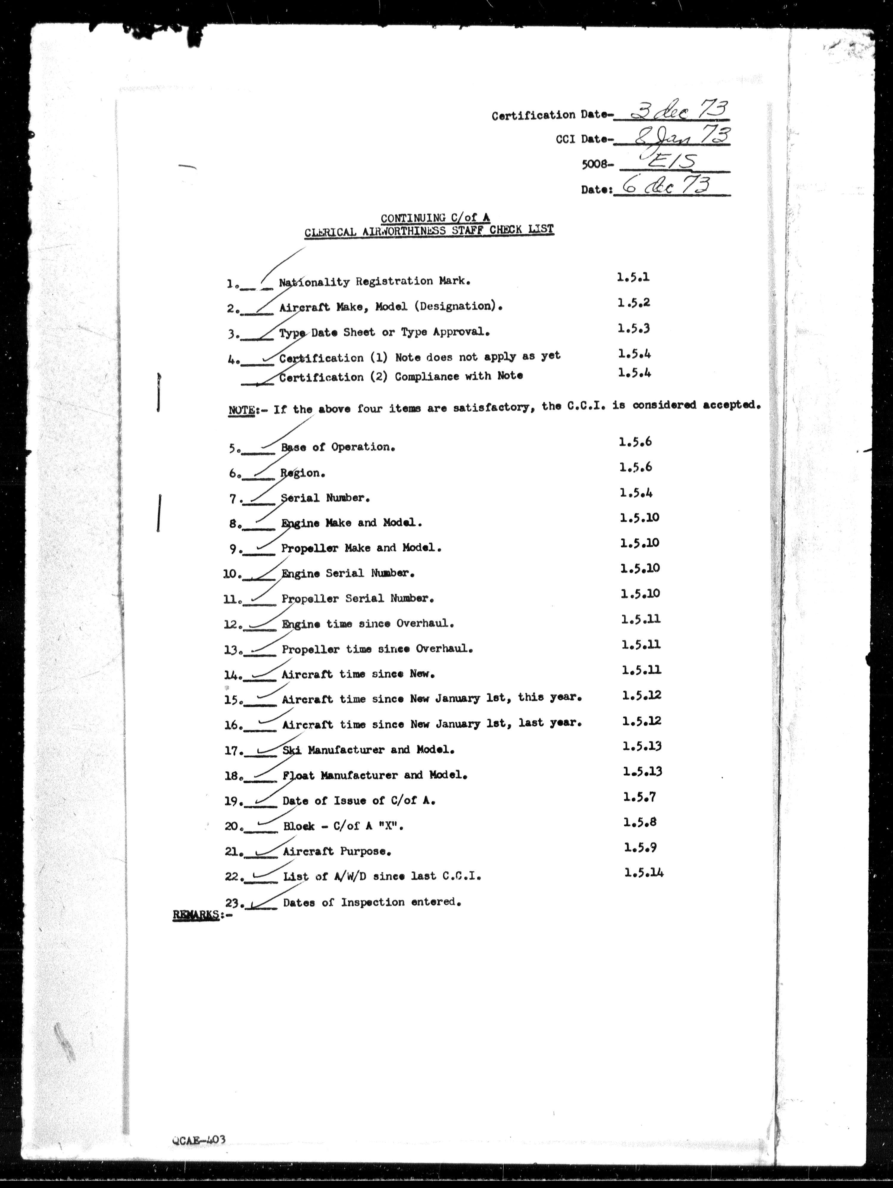 Department of Transport : Civil aircraft registration, inspection and operation files, block 5008, 1920-1986 - 7283