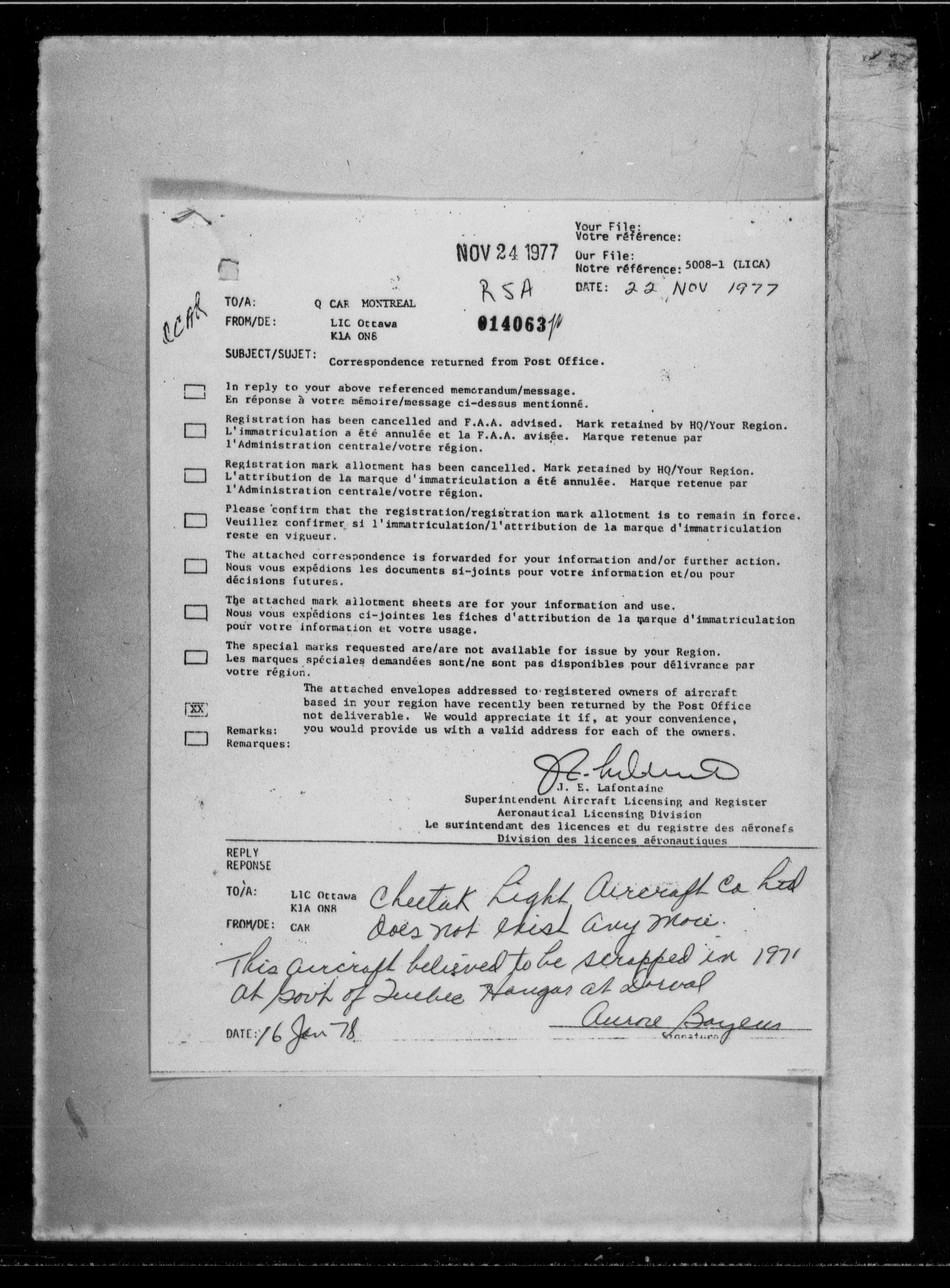 Department of Transport : Civil aircraft registration, inspection and operation files, block 5008, 1920-1986 - 7286