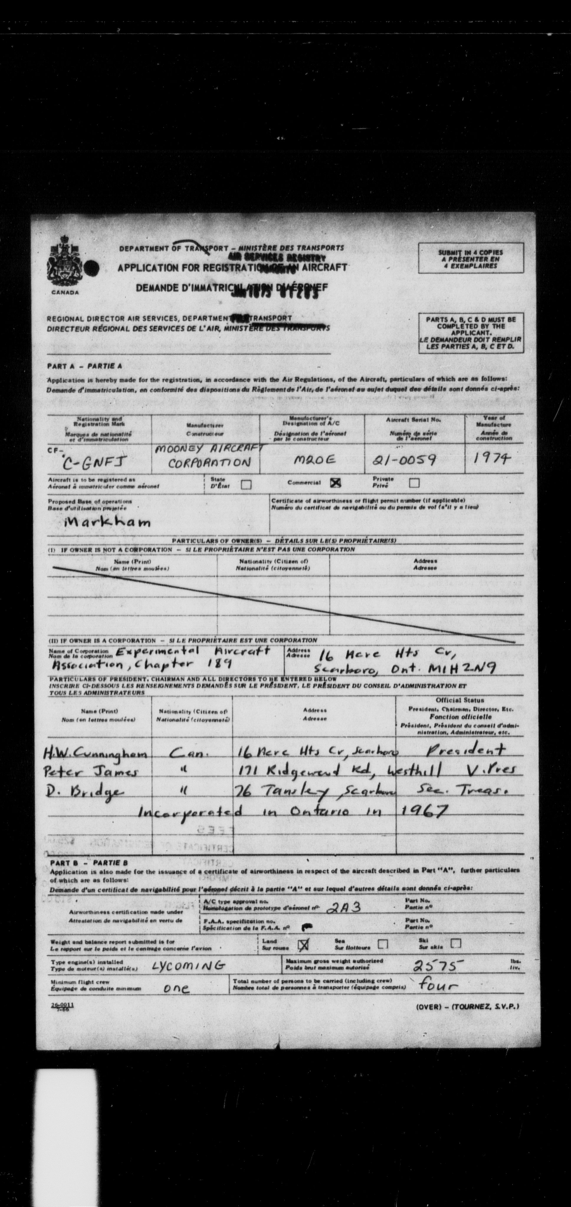 Department of Transport : Civil aircraft registration, inspection and operation files, block 5008, 1920-1986 - 7289