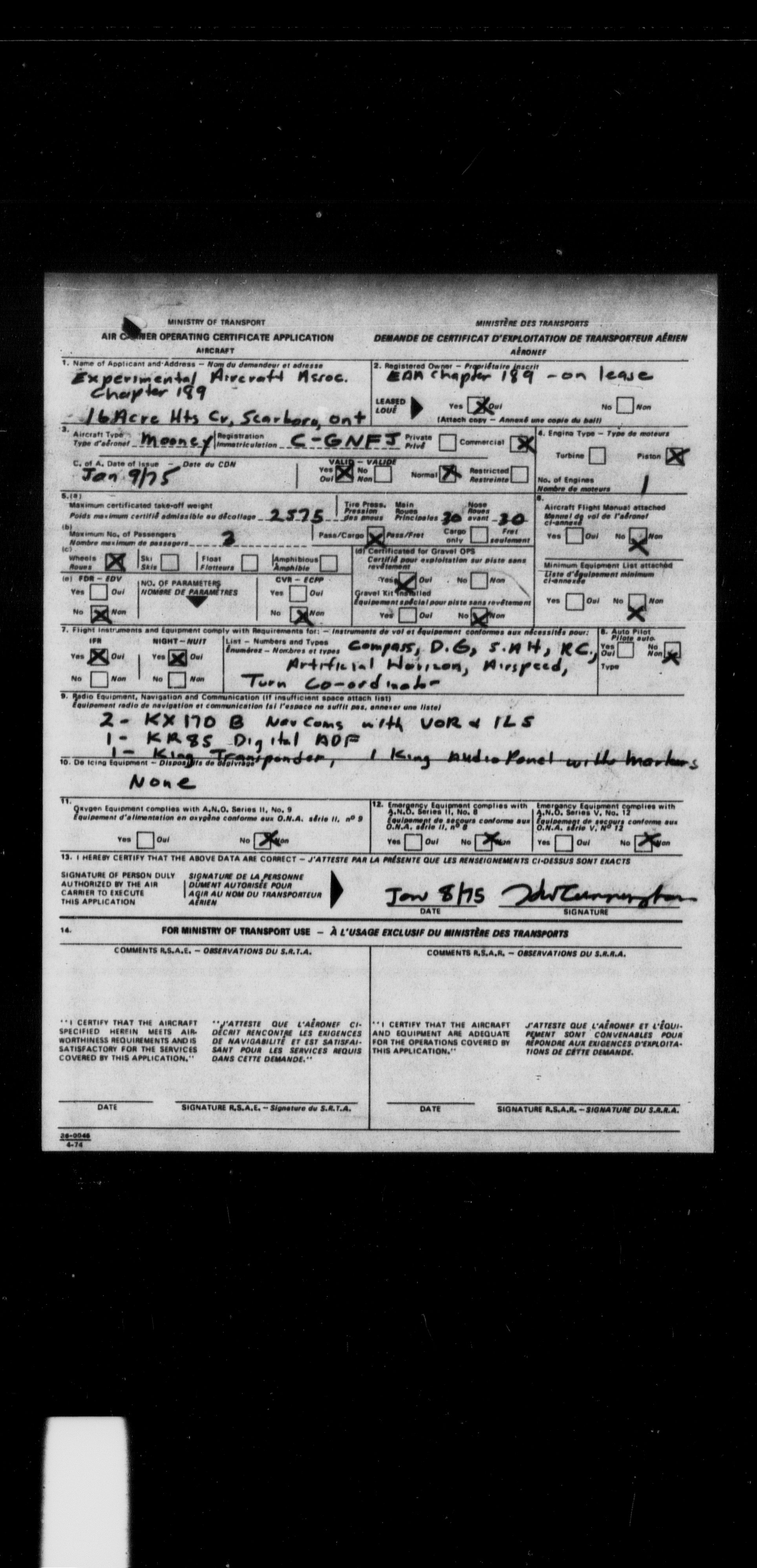Department of Transport : Civil aircraft registration, inspection and operation files, block 5008, 1920-1986 - 7289