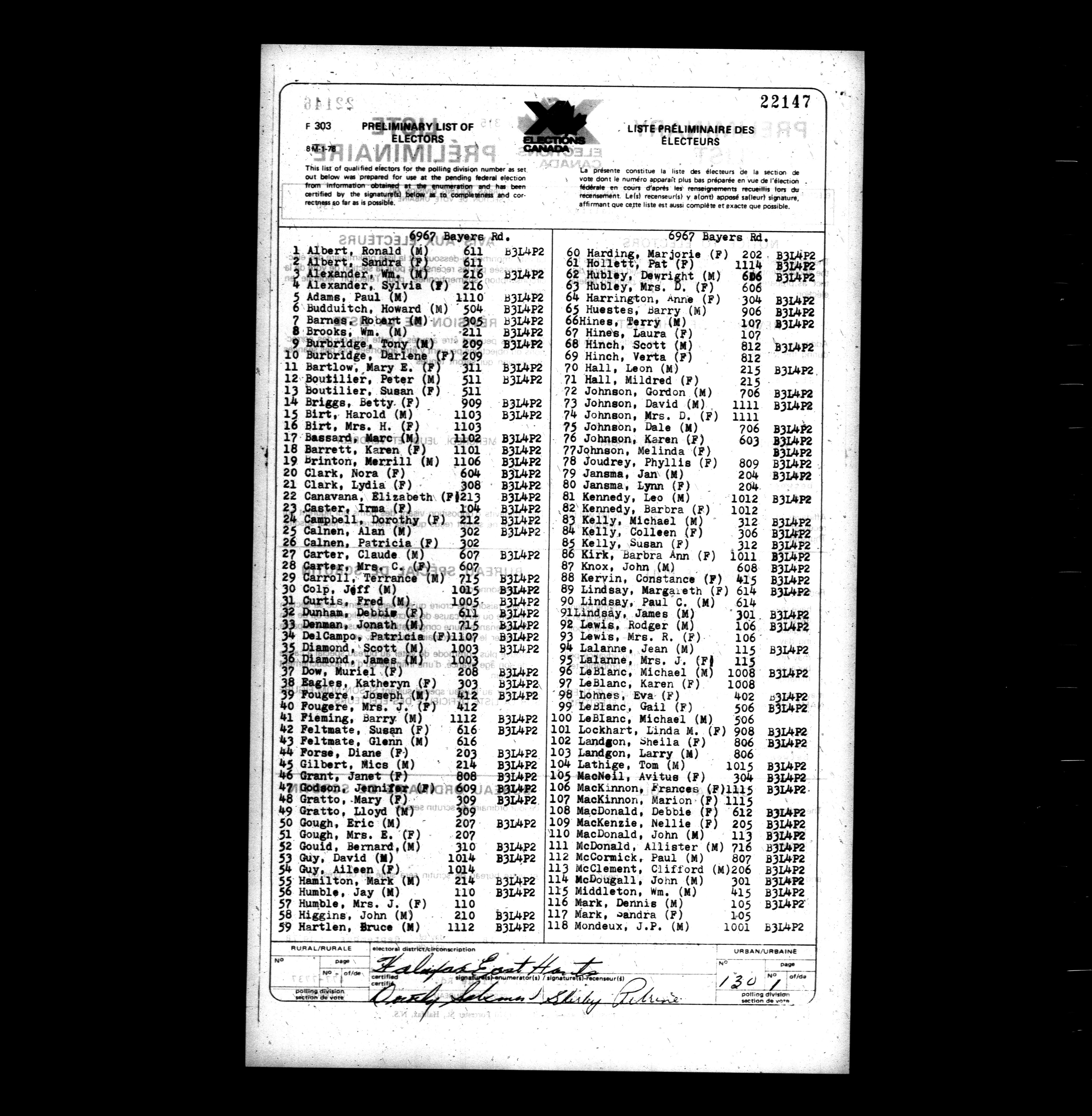 Voters' lists Québec and Nova Scotia, 1979 - 729