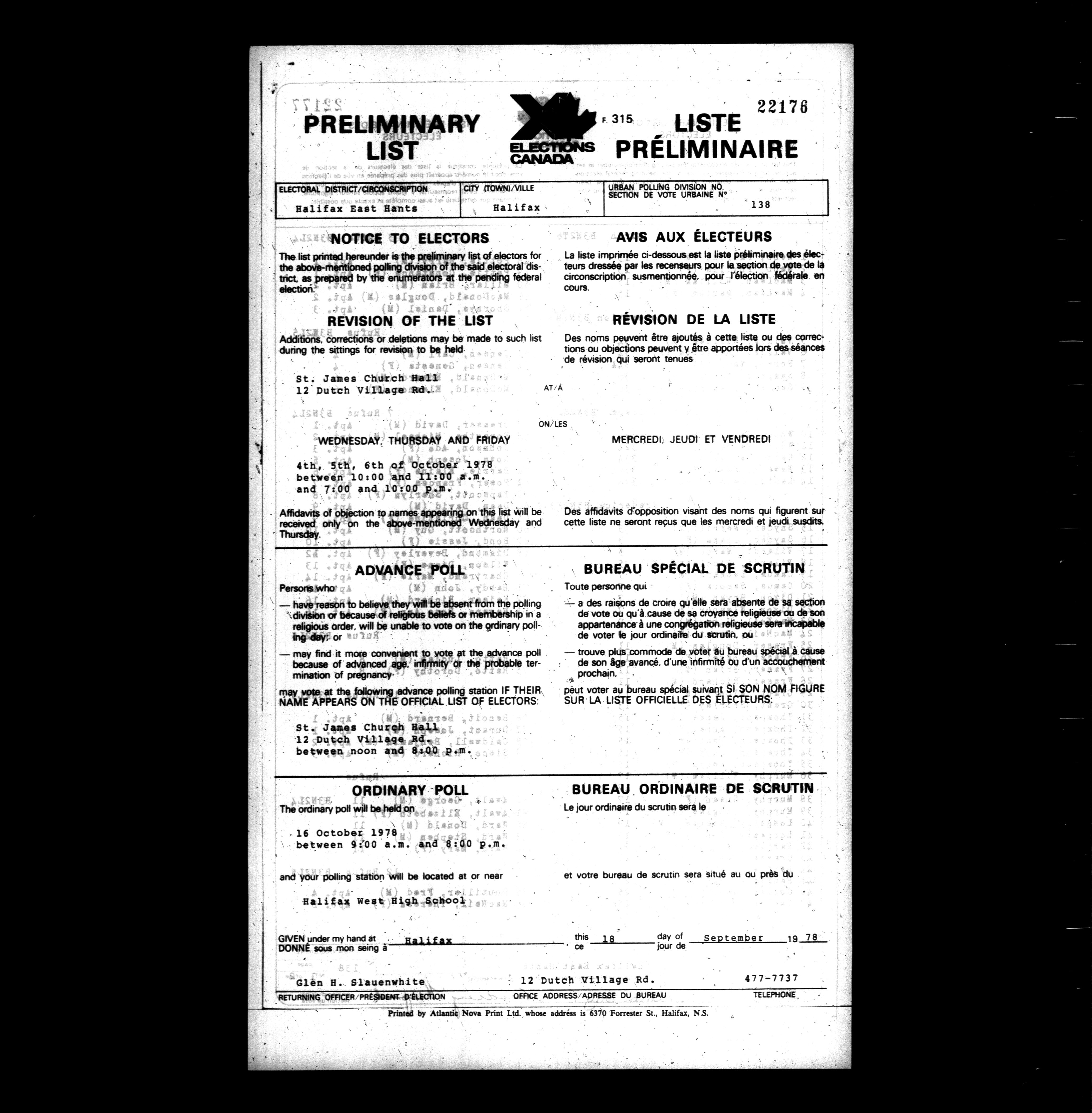 Voters' lists Québec and Nova Scotia, 1979 - 729