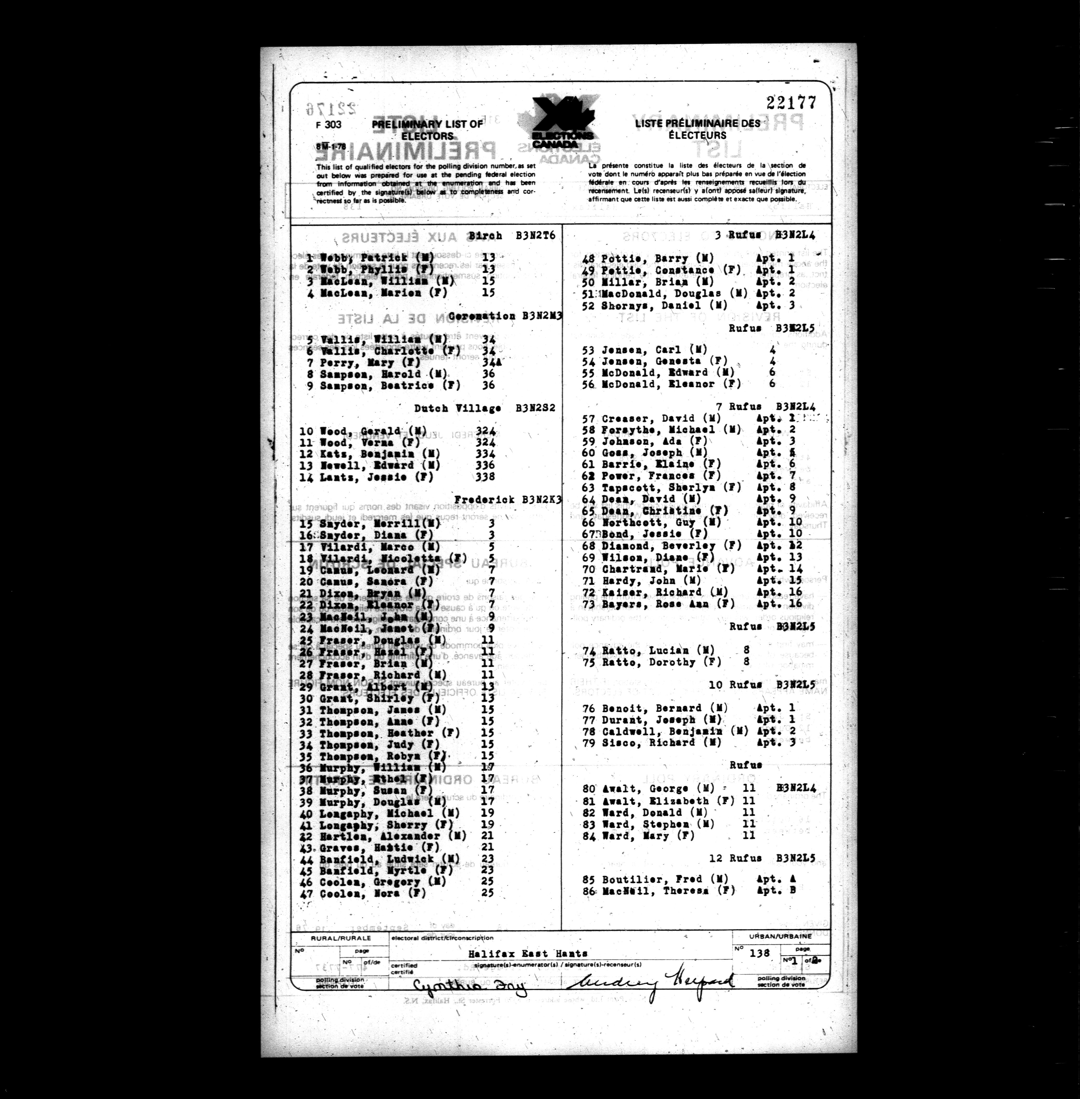 Voters' lists Québec and Nova Scotia, 1979 - 729