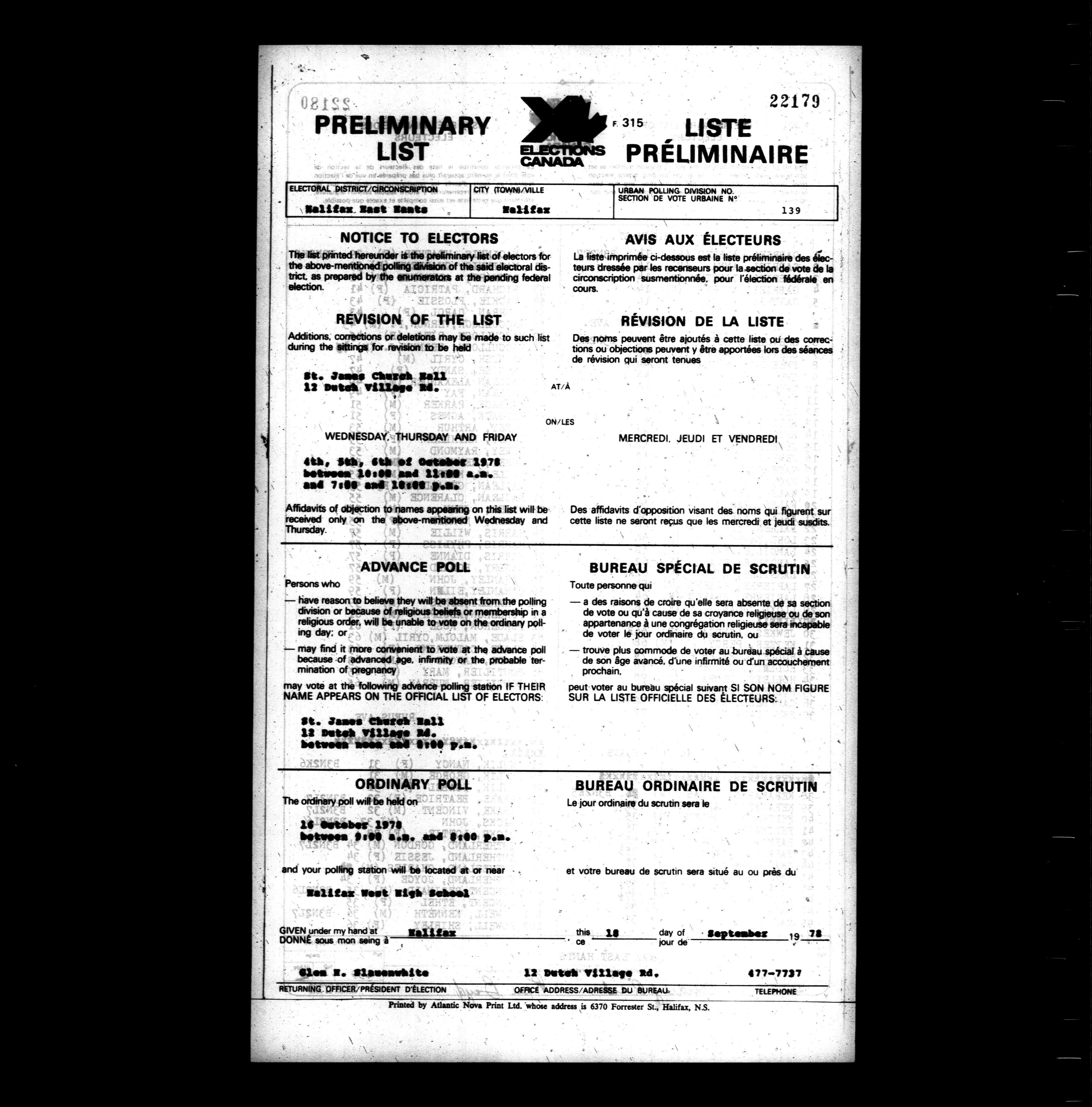 Voters' lists Québec and Nova Scotia, 1979 - 729