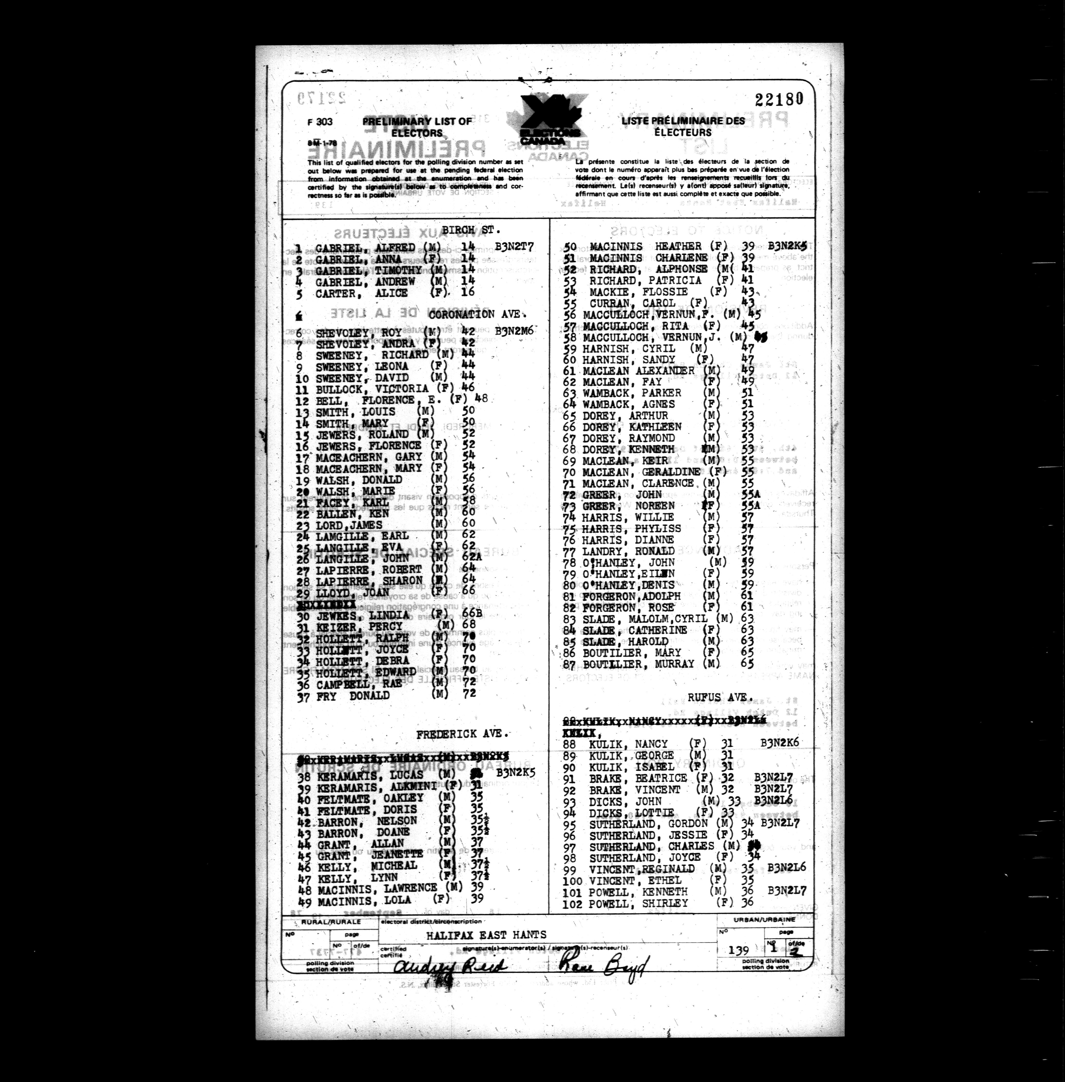 Voters' lists Québec and Nova Scotia, 1979 - 729