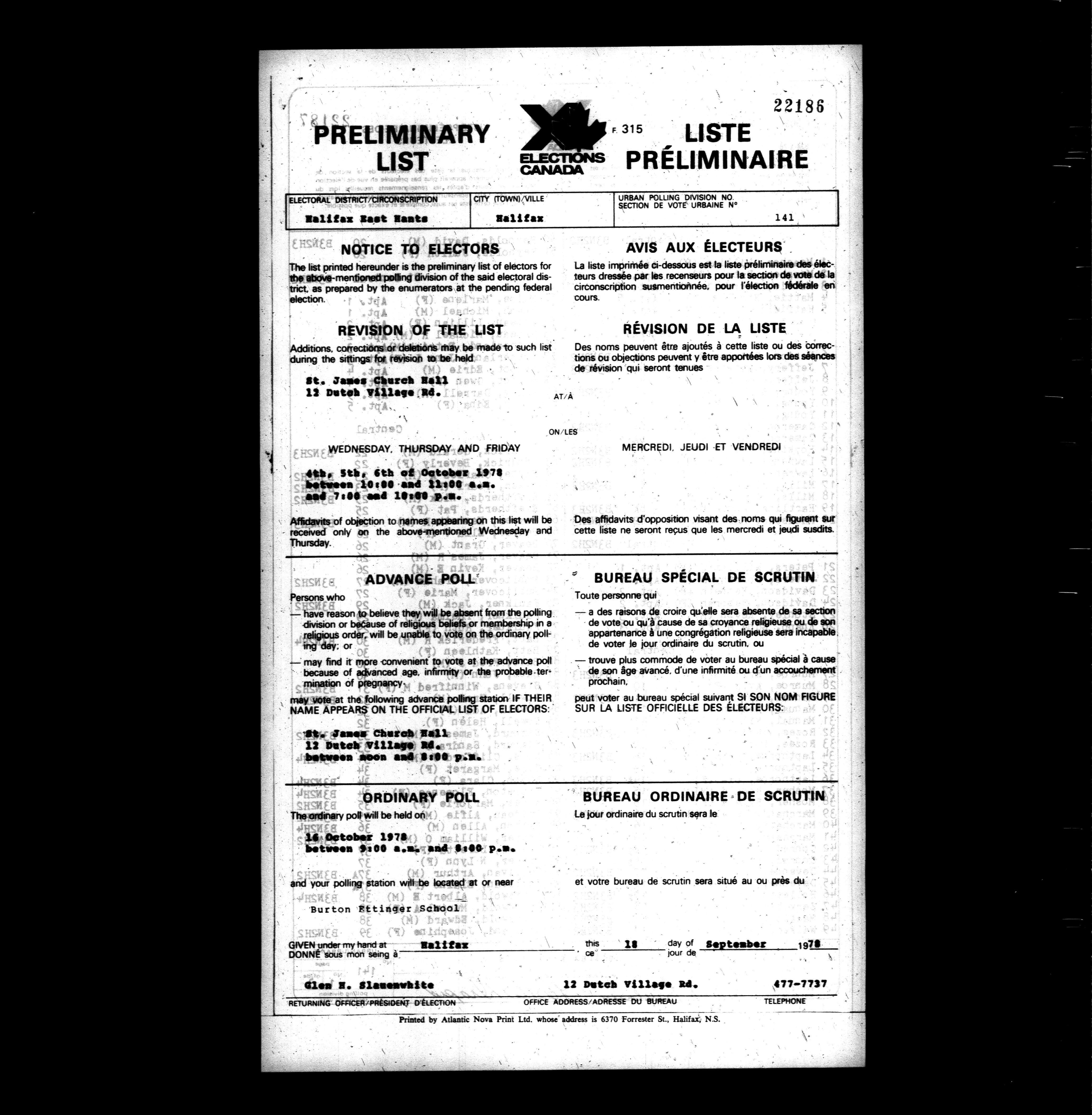 Voters' lists Québec and Nova Scotia, 1979 - 729
