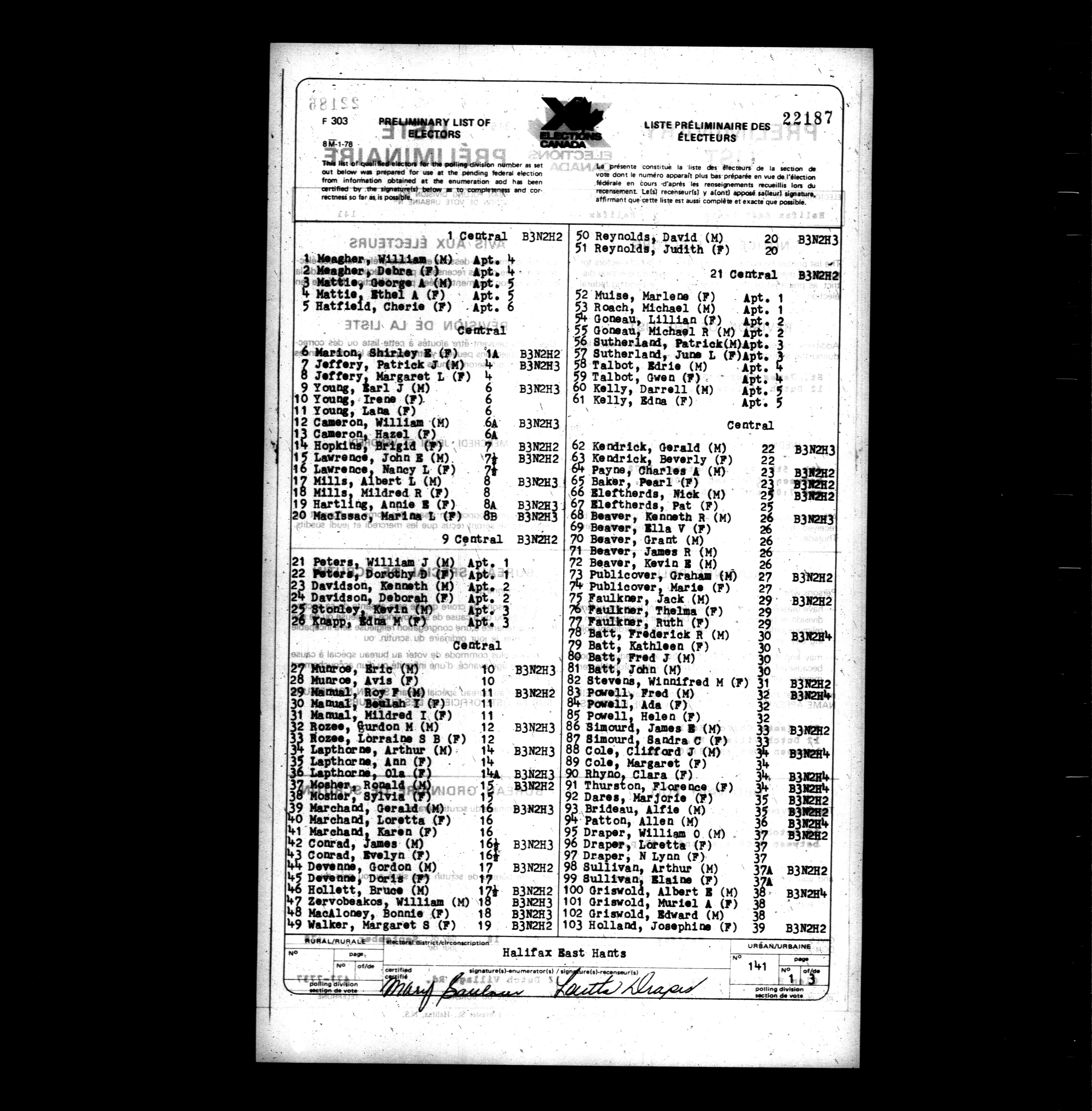 Voters' lists Québec and Nova Scotia, 1979 - 729