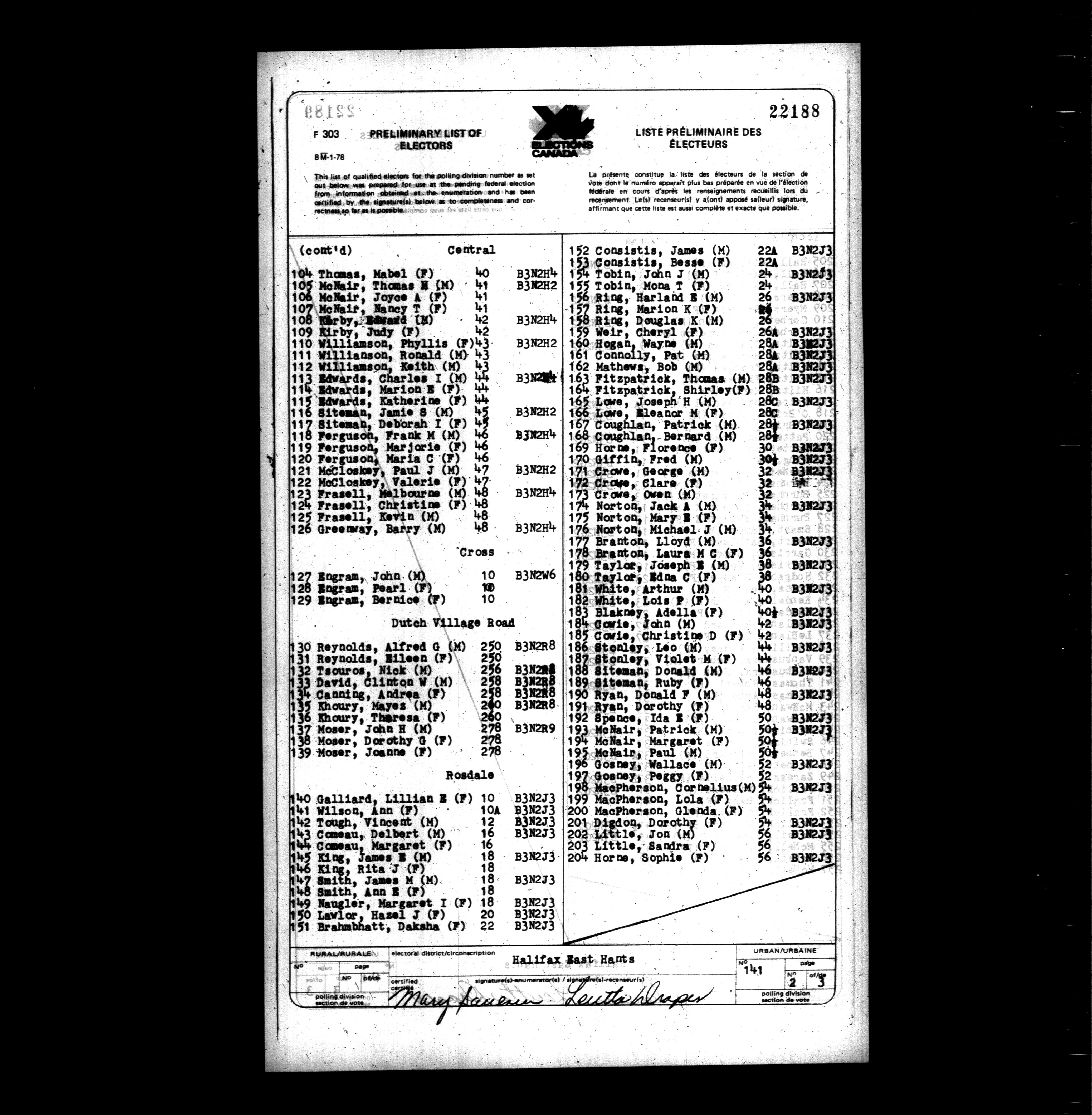Voters' lists Québec and Nova Scotia, 1979 - 729