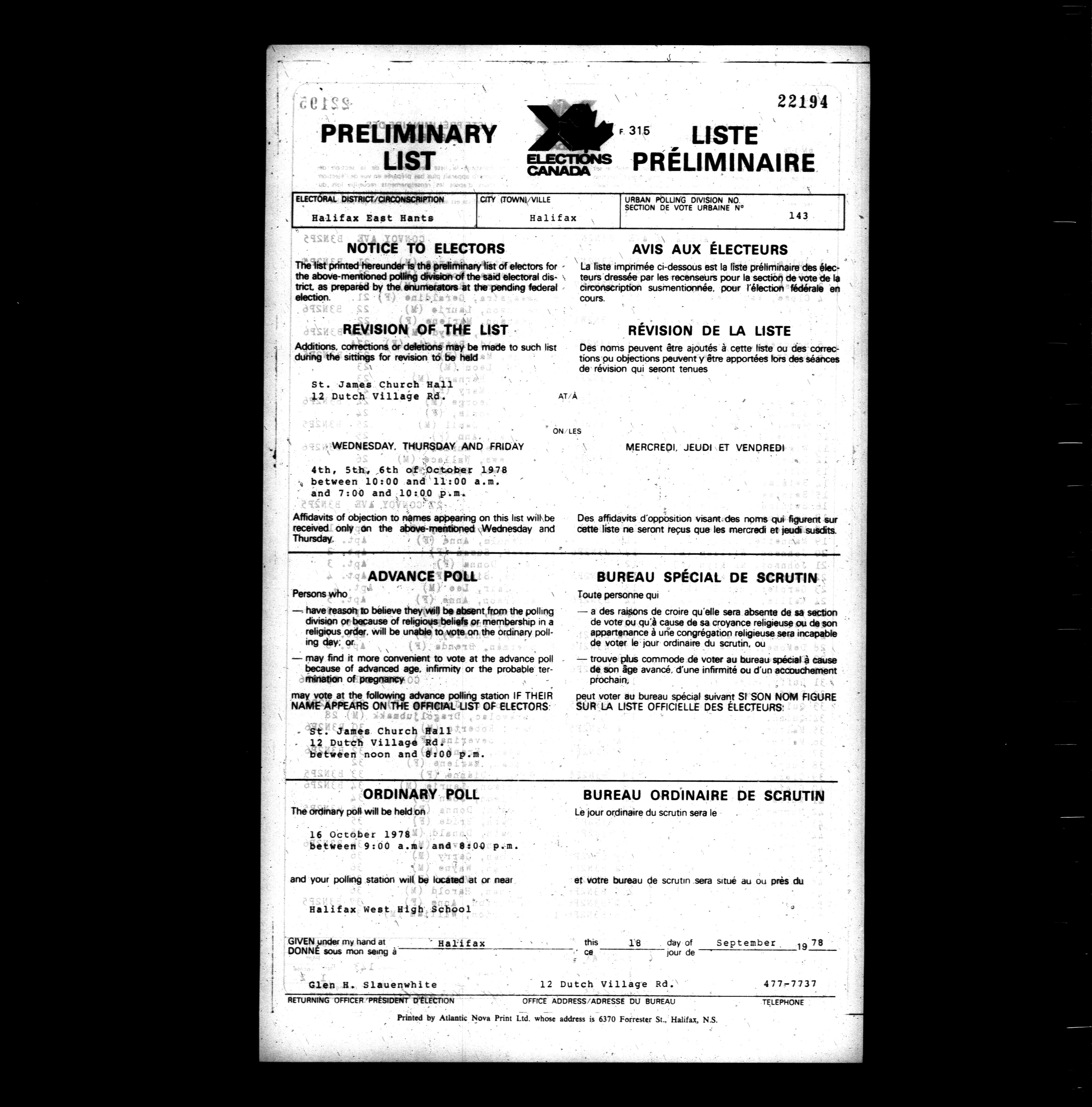 Voters' lists Québec and Nova Scotia, 1979 - 729