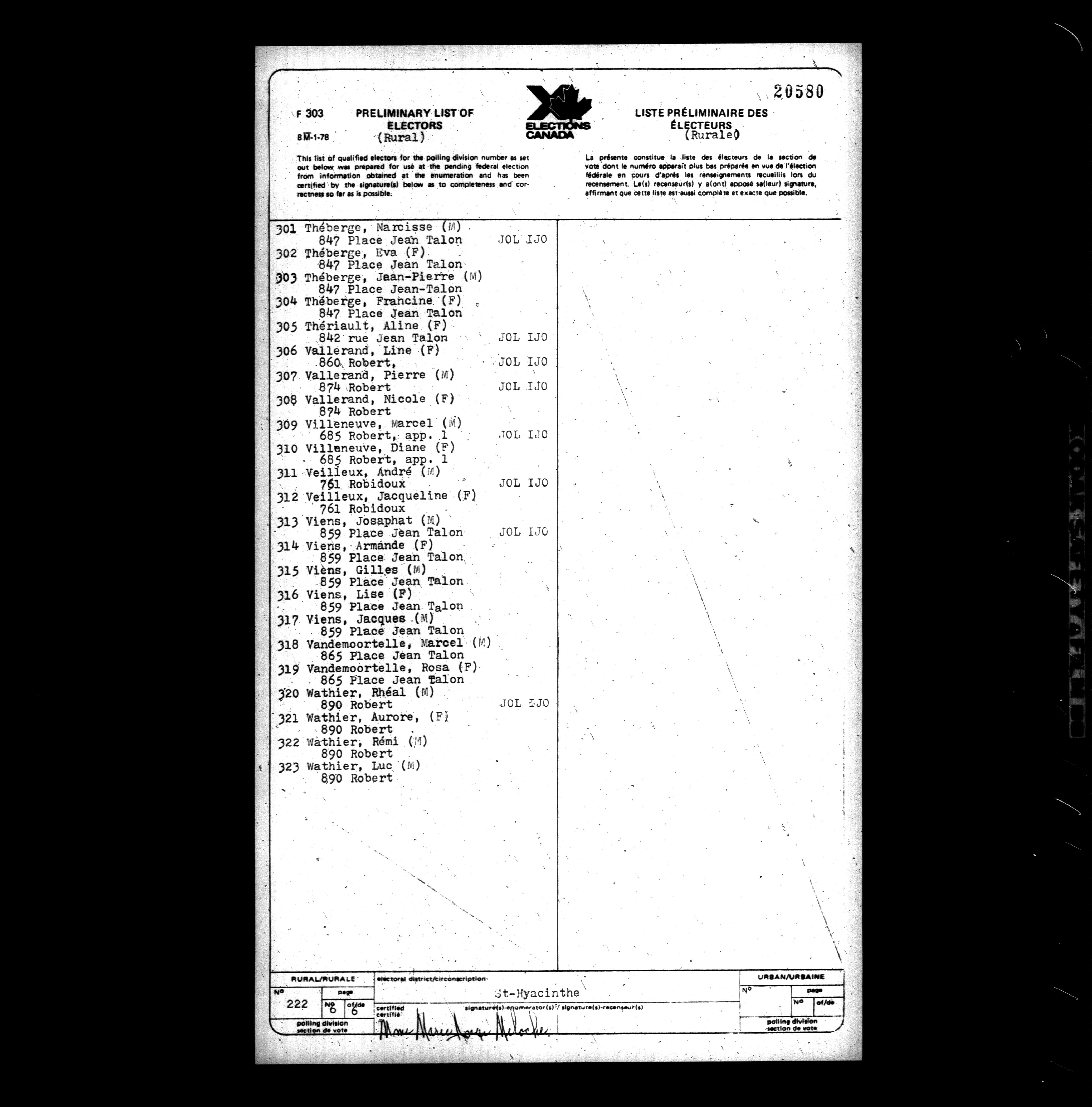 Voters' lists Québec and Nova Scotia, 1979 - 729