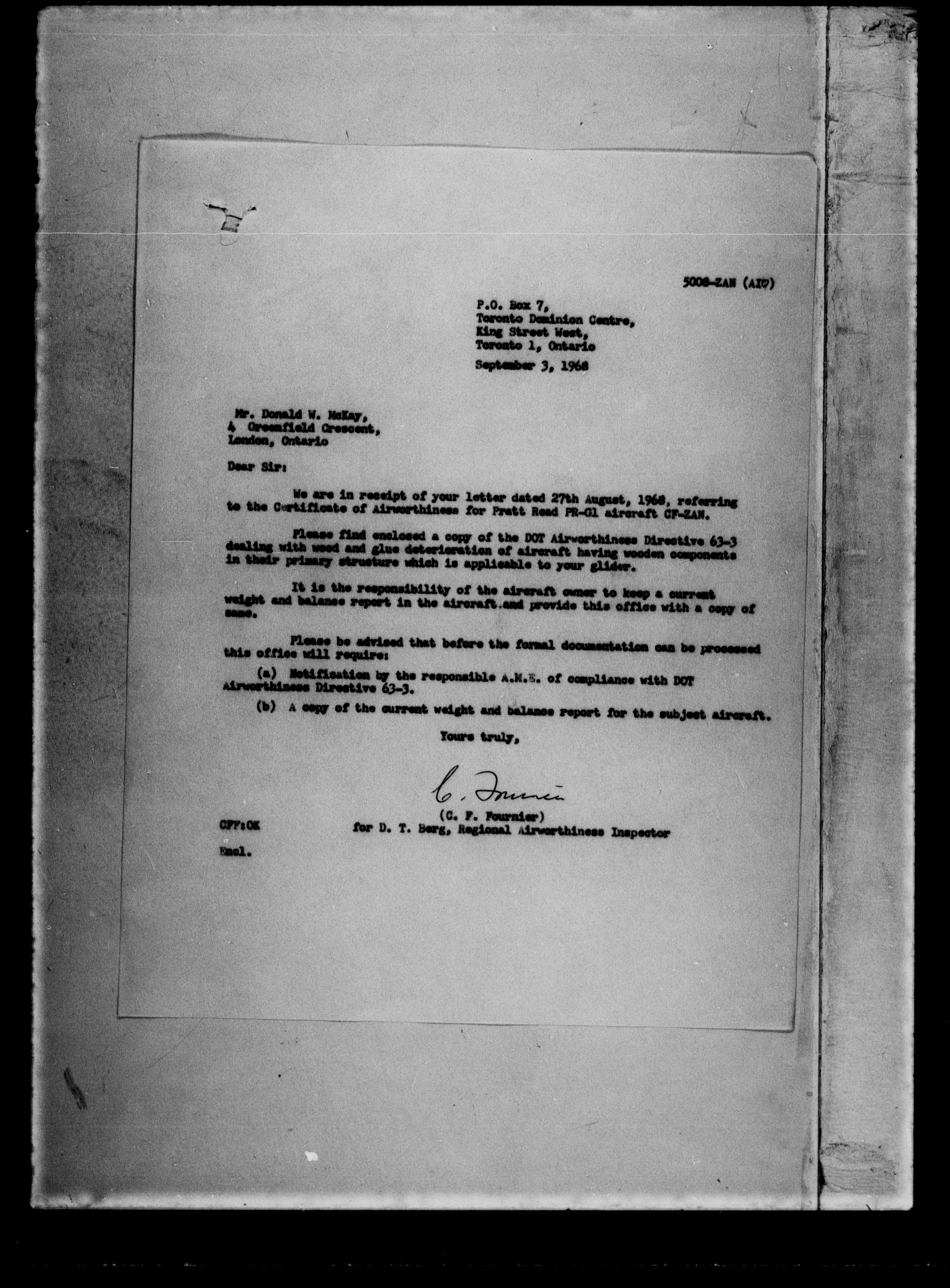 Department of Transport : Civil aircraft registration, inspection and operation files, block 5008, 1920-1986 - 7293