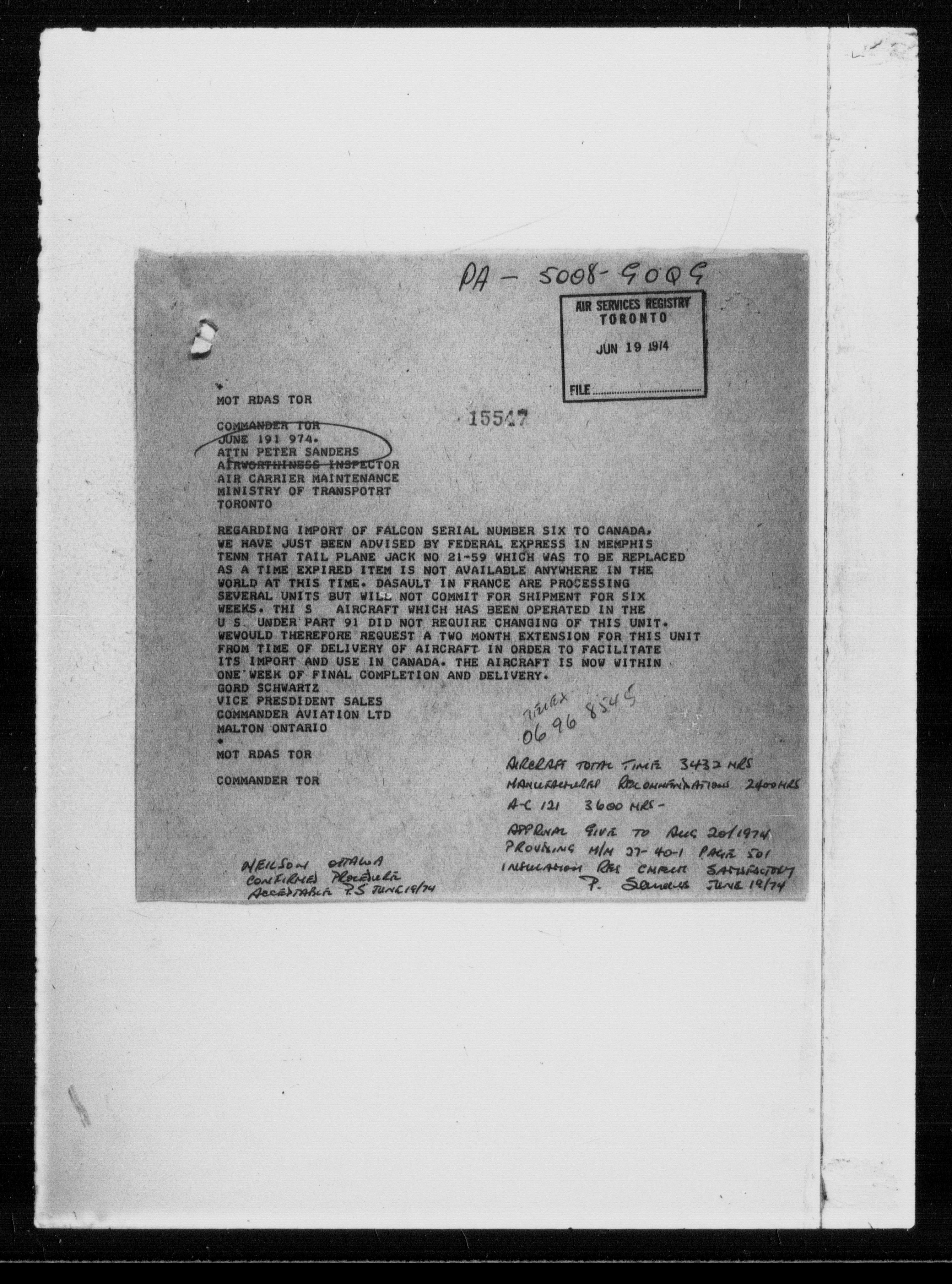 Department of Transport : Civil aircraft registration, inspection and operation files, block 5008, 1920-1986 - 7295
