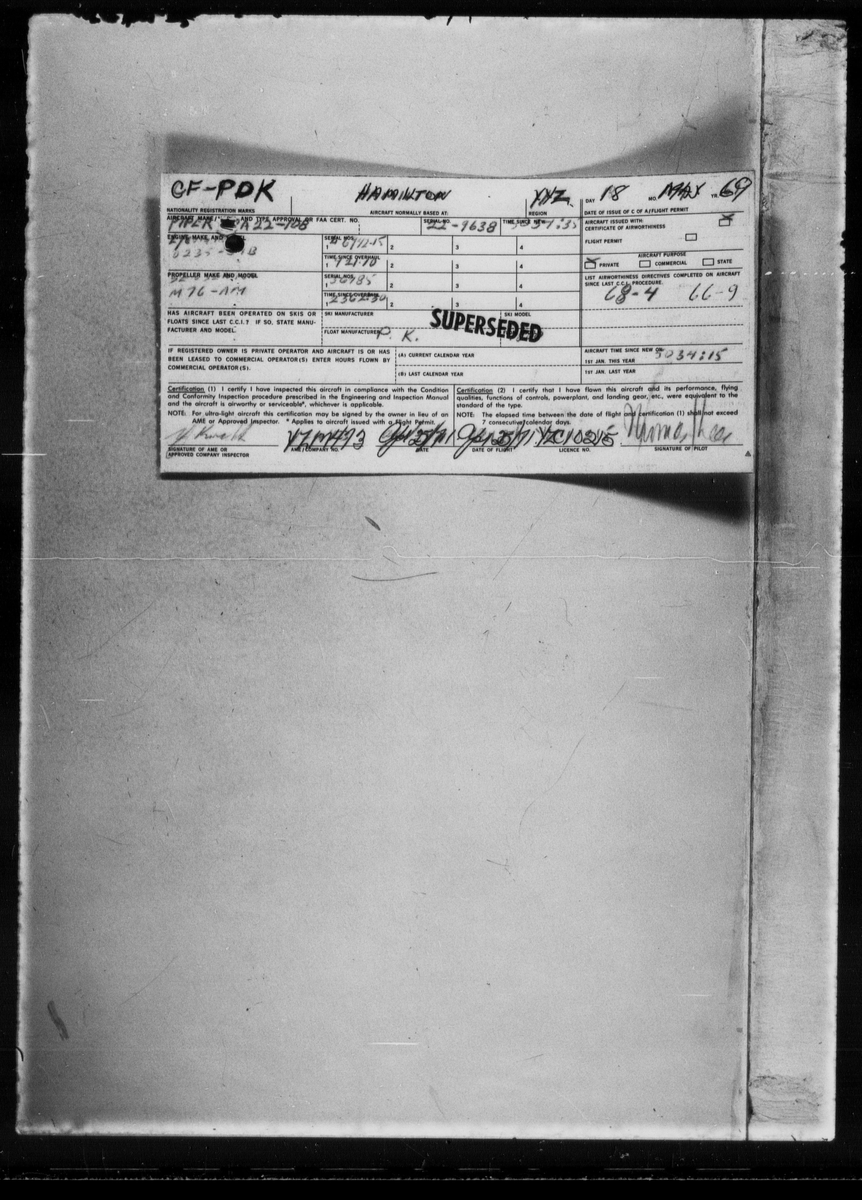 Department of Transport : Civil aircraft registration, inspection and operation files, block 5008, 1920-1986 - 7297
