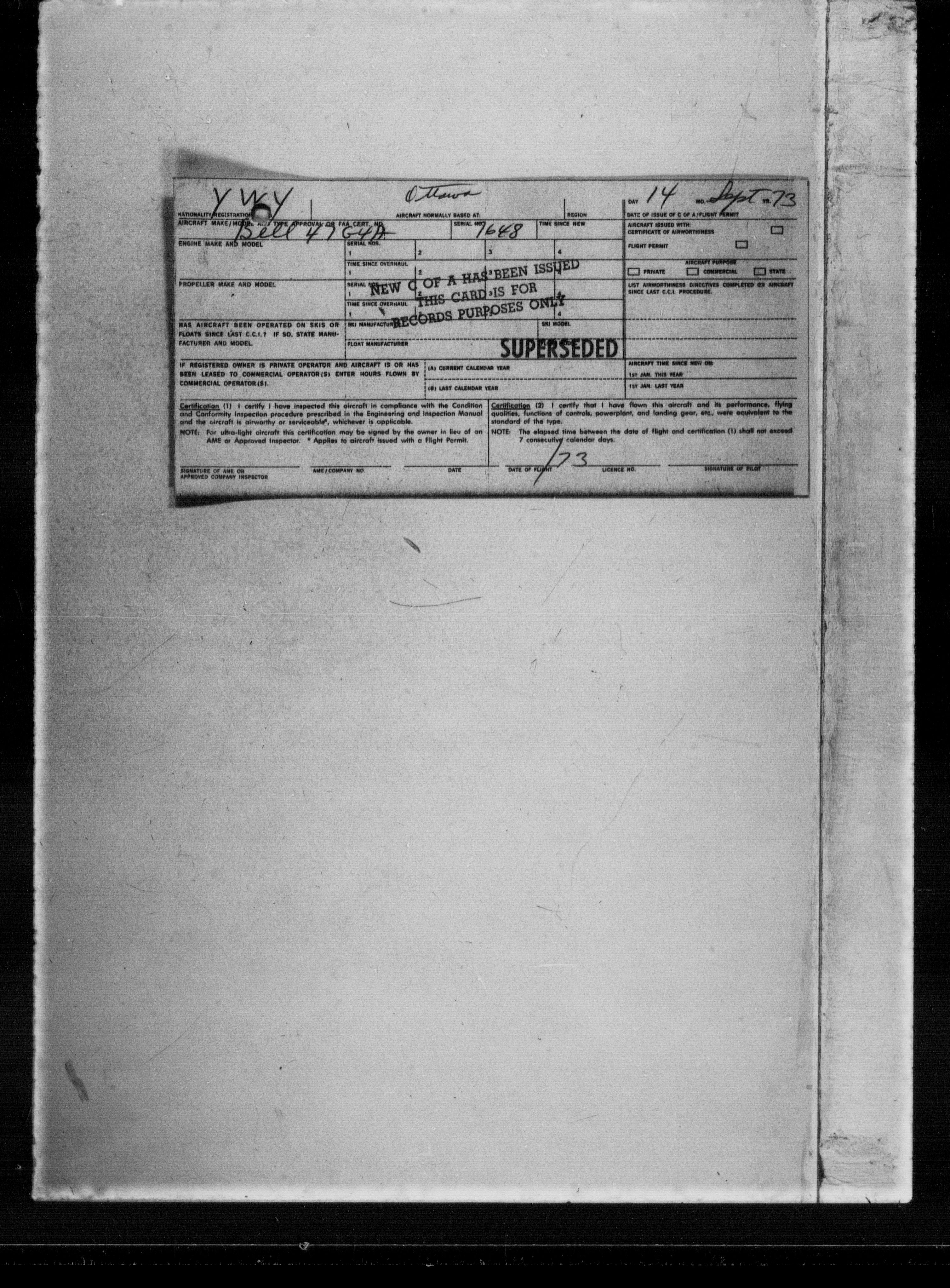 Department of Transport : Civil aircraft registration, inspection and operation files, block 5008, 1920-1986 - 7298