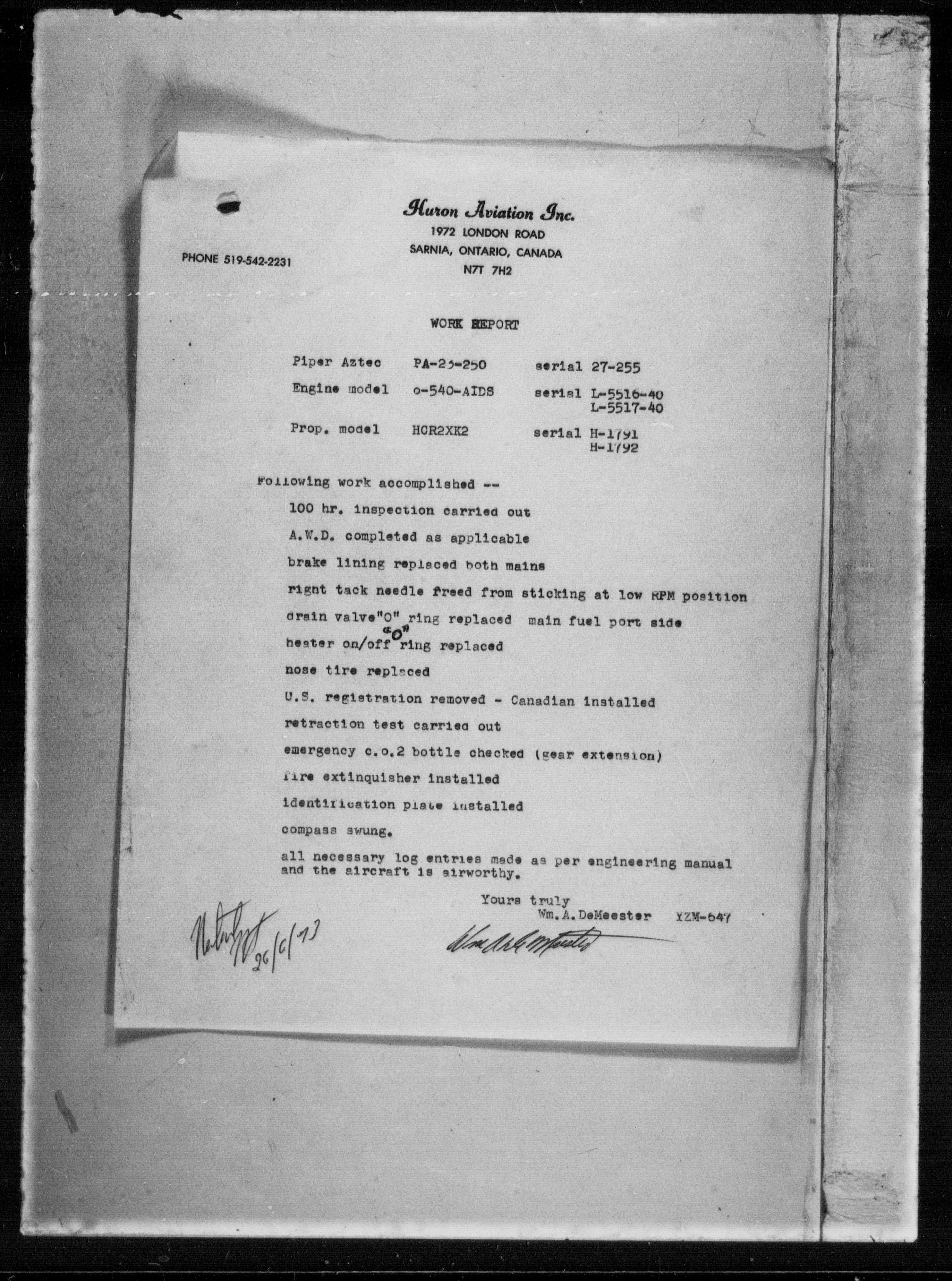 Department of Transport : Civil aircraft registration, inspection and operation files, block 5008, 1920-1986 - 7299