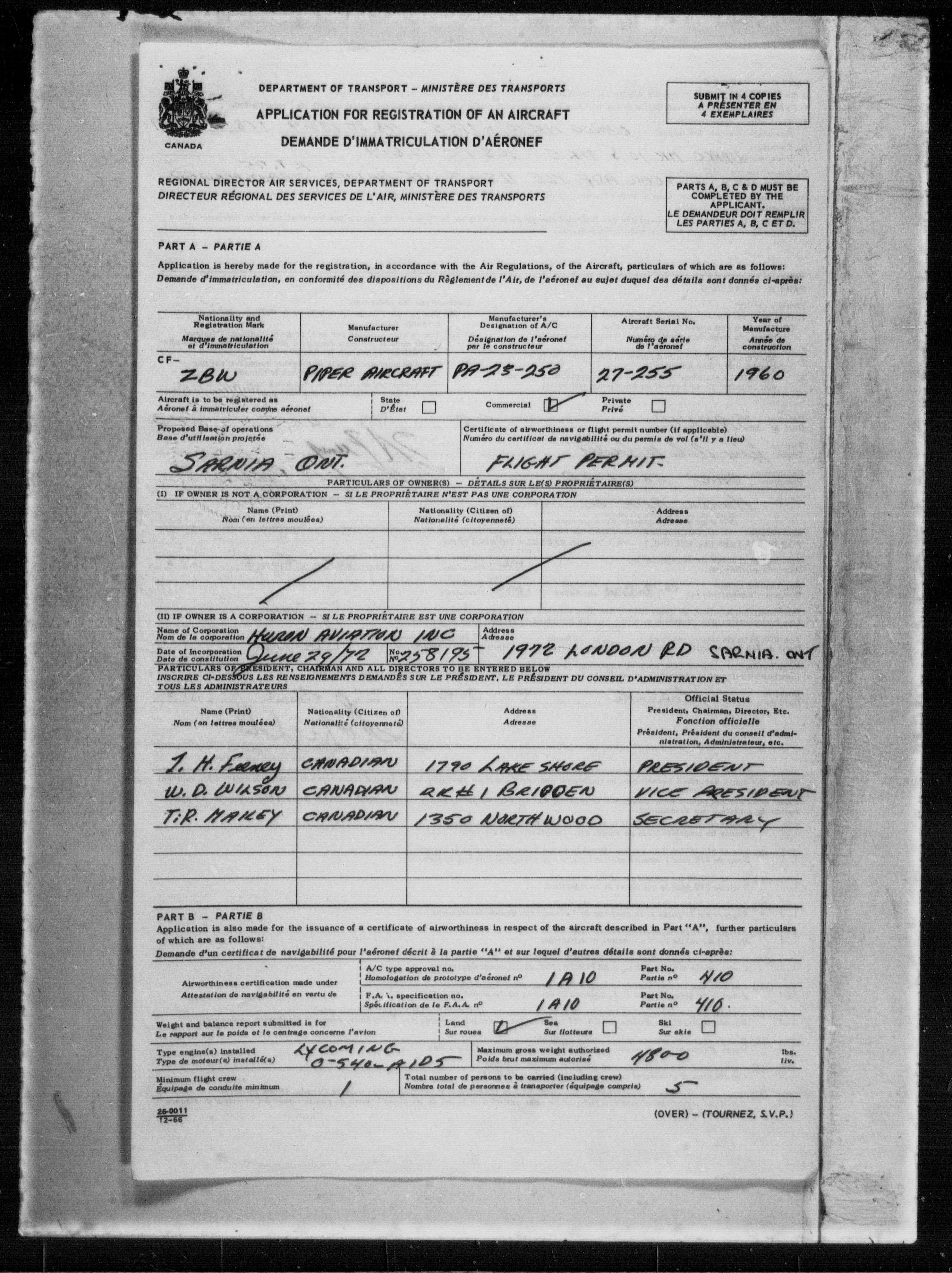 Department of Transport : Civil aircraft registration, inspection and operation files, block 5008, 1920-1986 - 7299