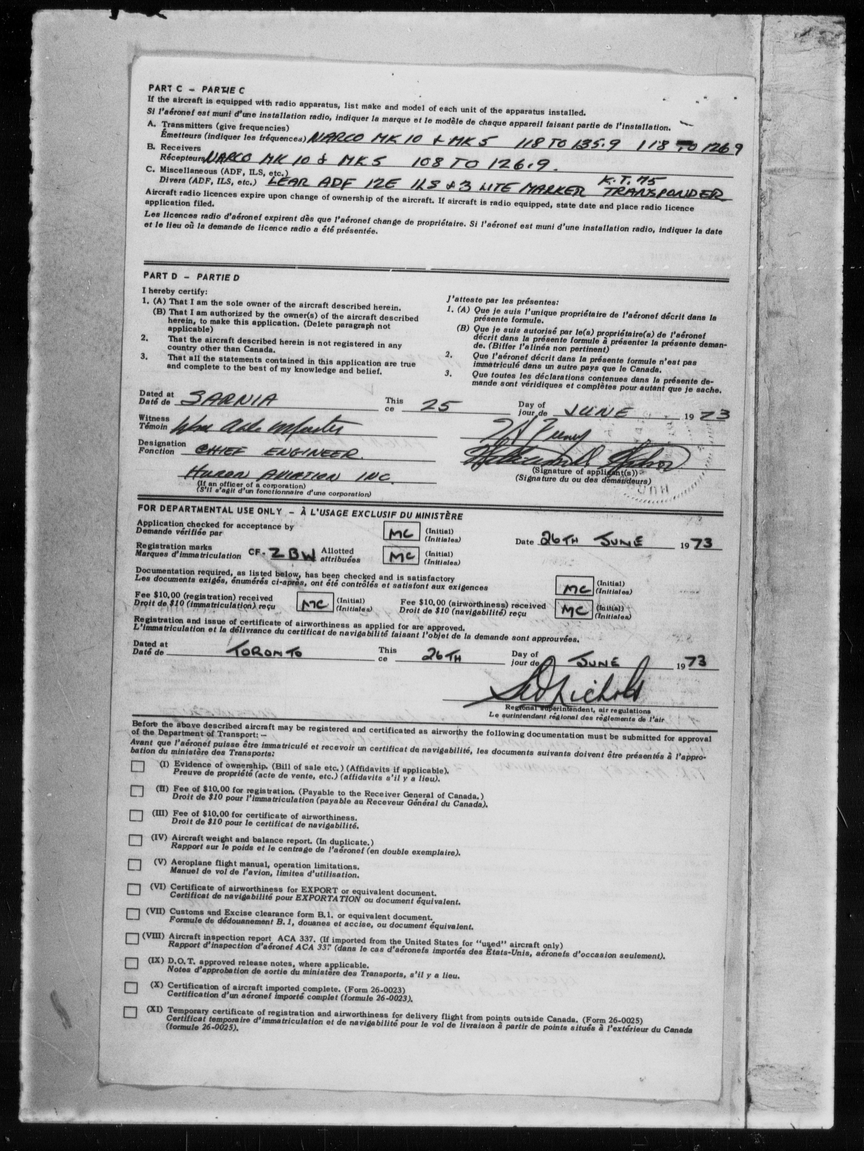 Department of Transport : Civil aircraft registration, inspection and operation files, block 5008, 1920-1986 - 7299