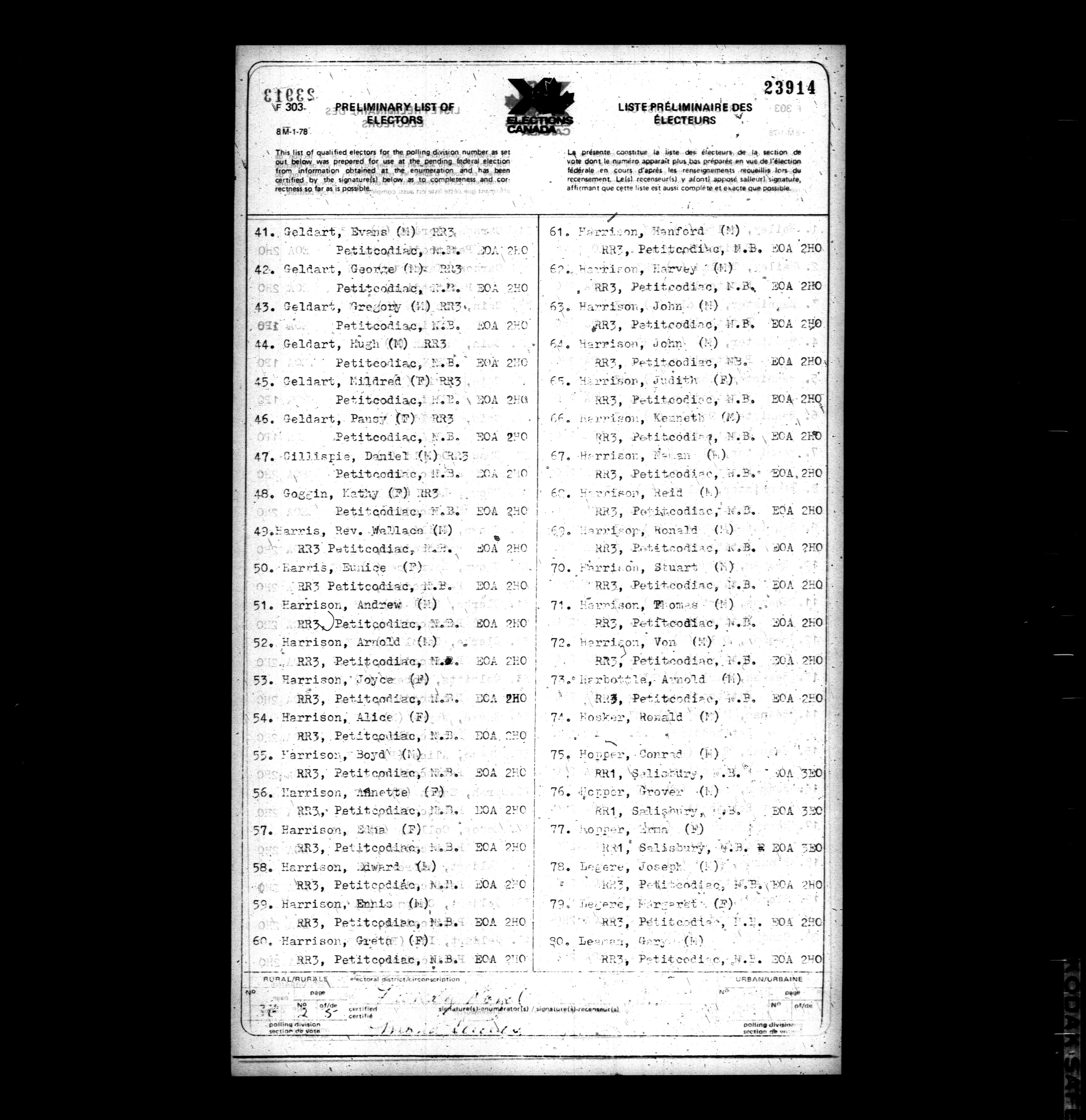 Voters' lists Nova Scotia and New Brunswick, 1979 - 730