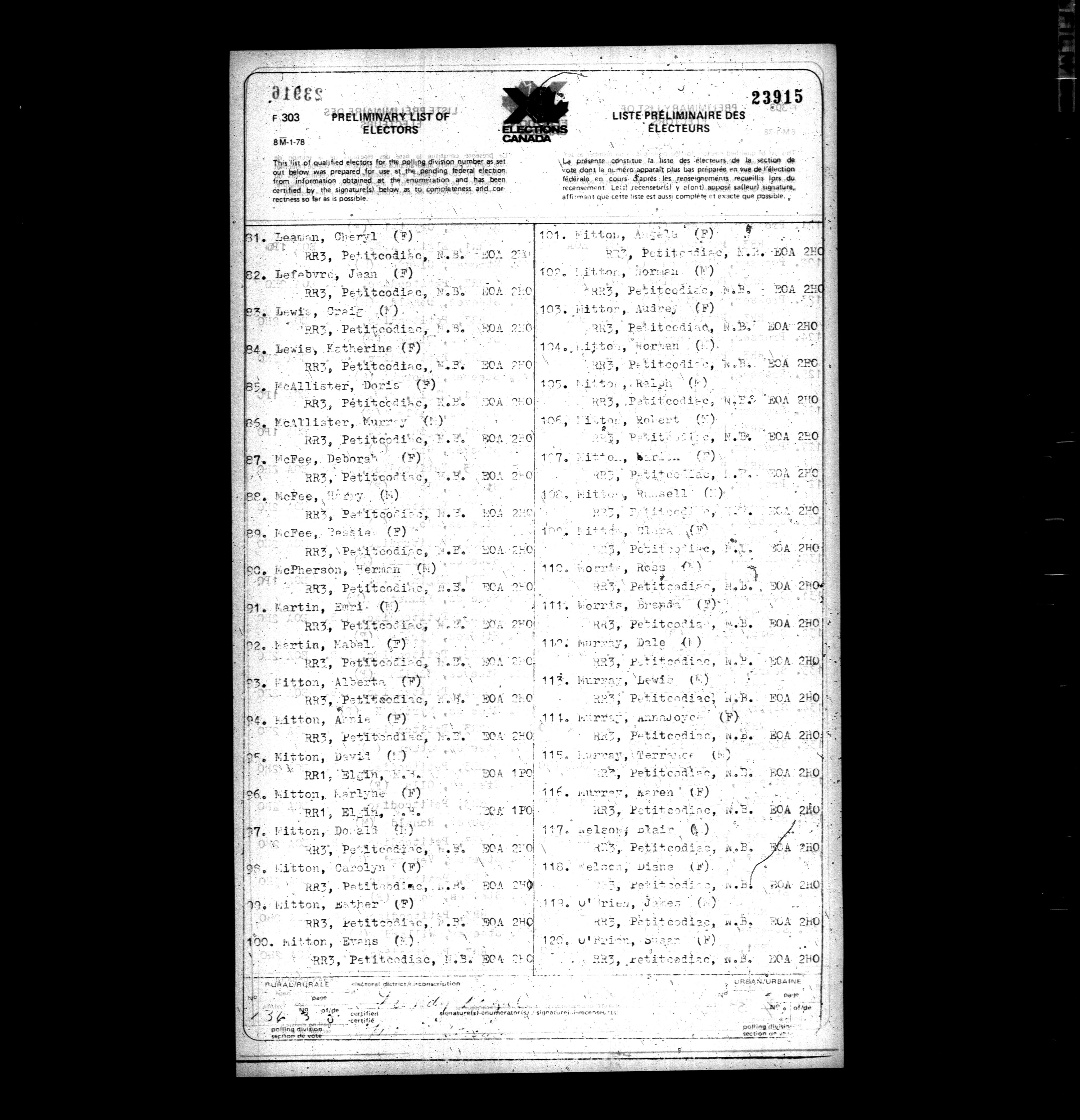 Voters' lists Nova Scotia and New Brunswick, 1979 - 730
