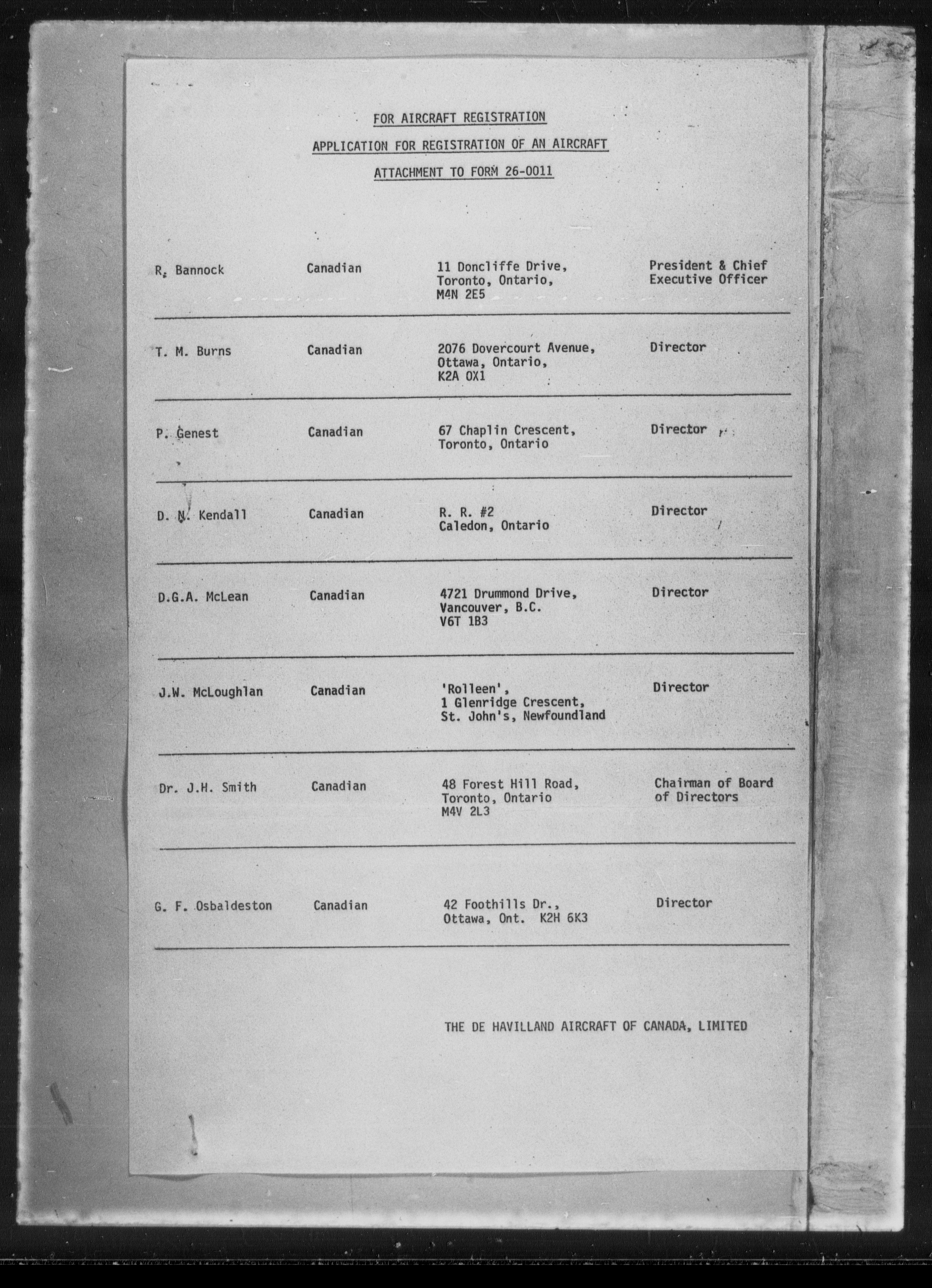Department of Transport : Civil aircraft registration, inspection and operation files, 1920-1986 : T-7300