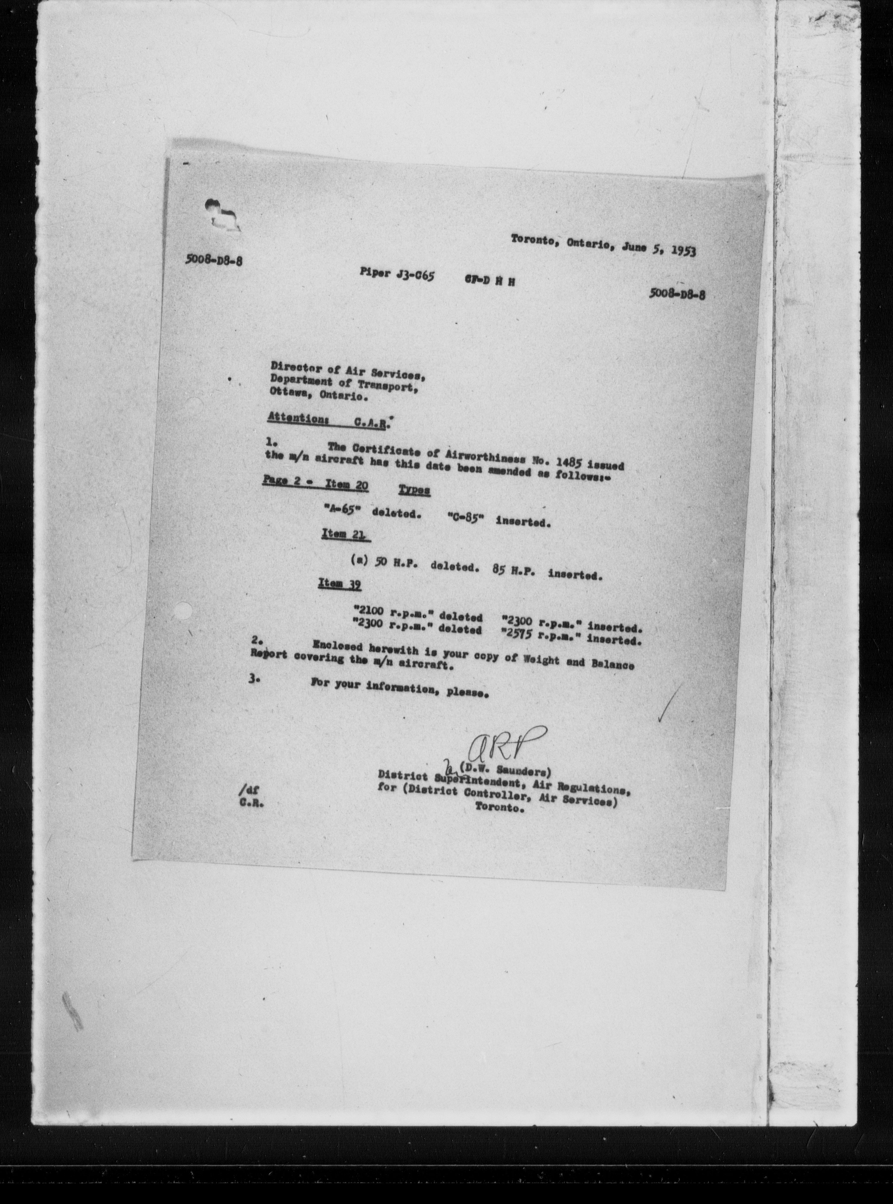 Department of Transport : Civil aircraft registration, inspection and operation files, block 5008, 1920-1986 - 7301