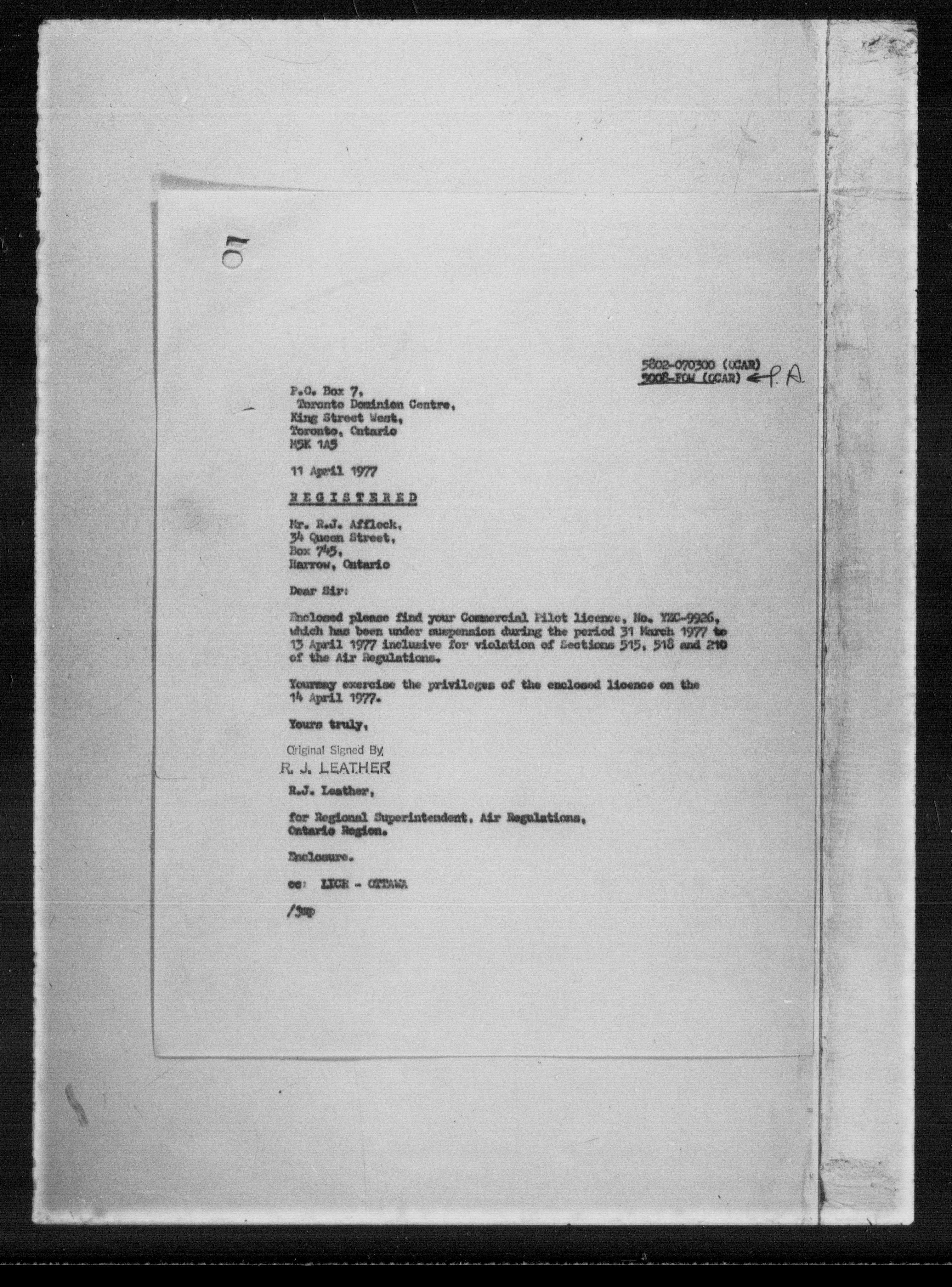 Department of Transport : Civil aircraft registration, inspection and operation files, block 5008, 1920-1986 - 7302
