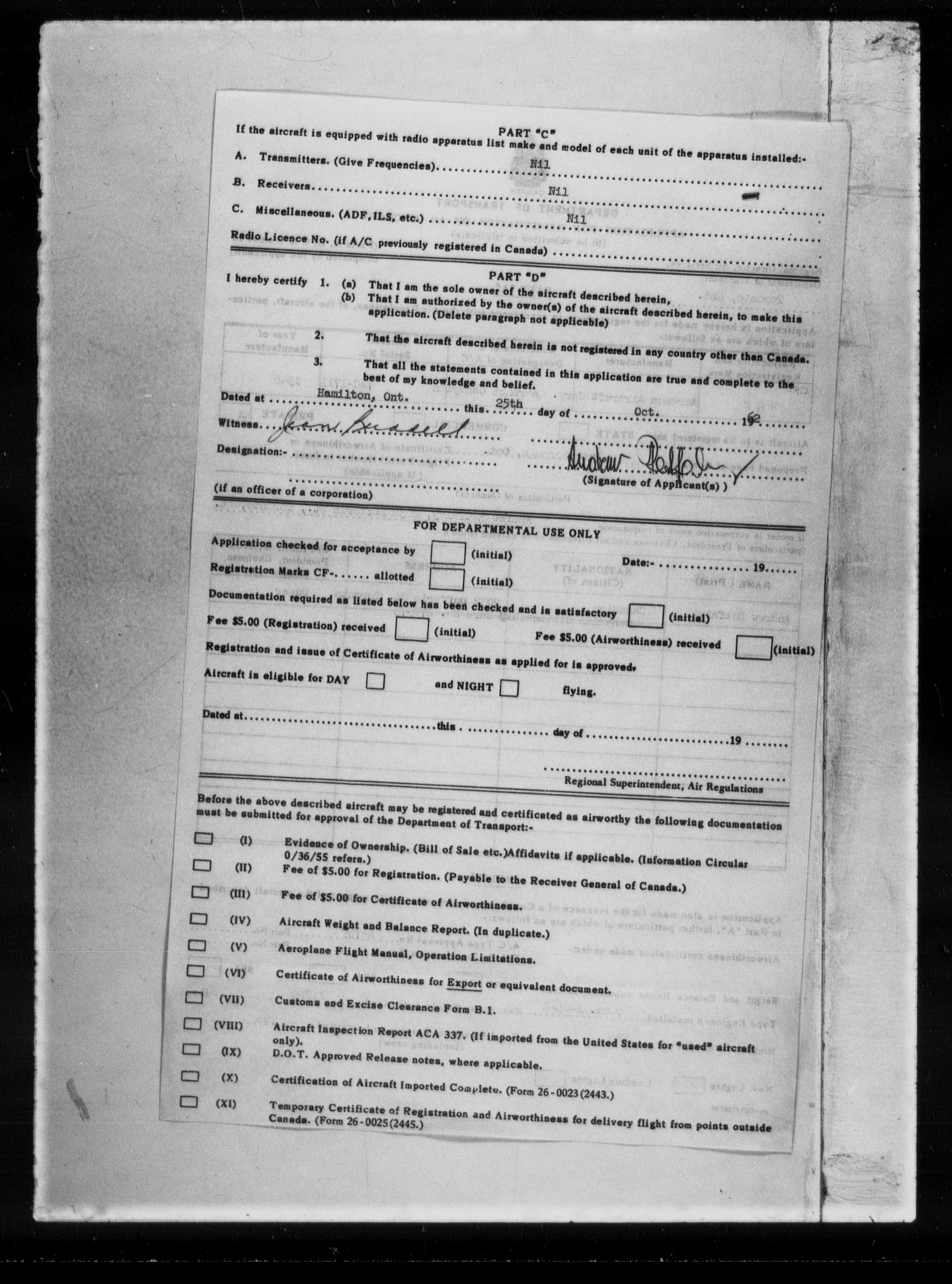 Department of Transport : Civil aircraft registration, inspection and operation files, 1920-1986 : T-7305