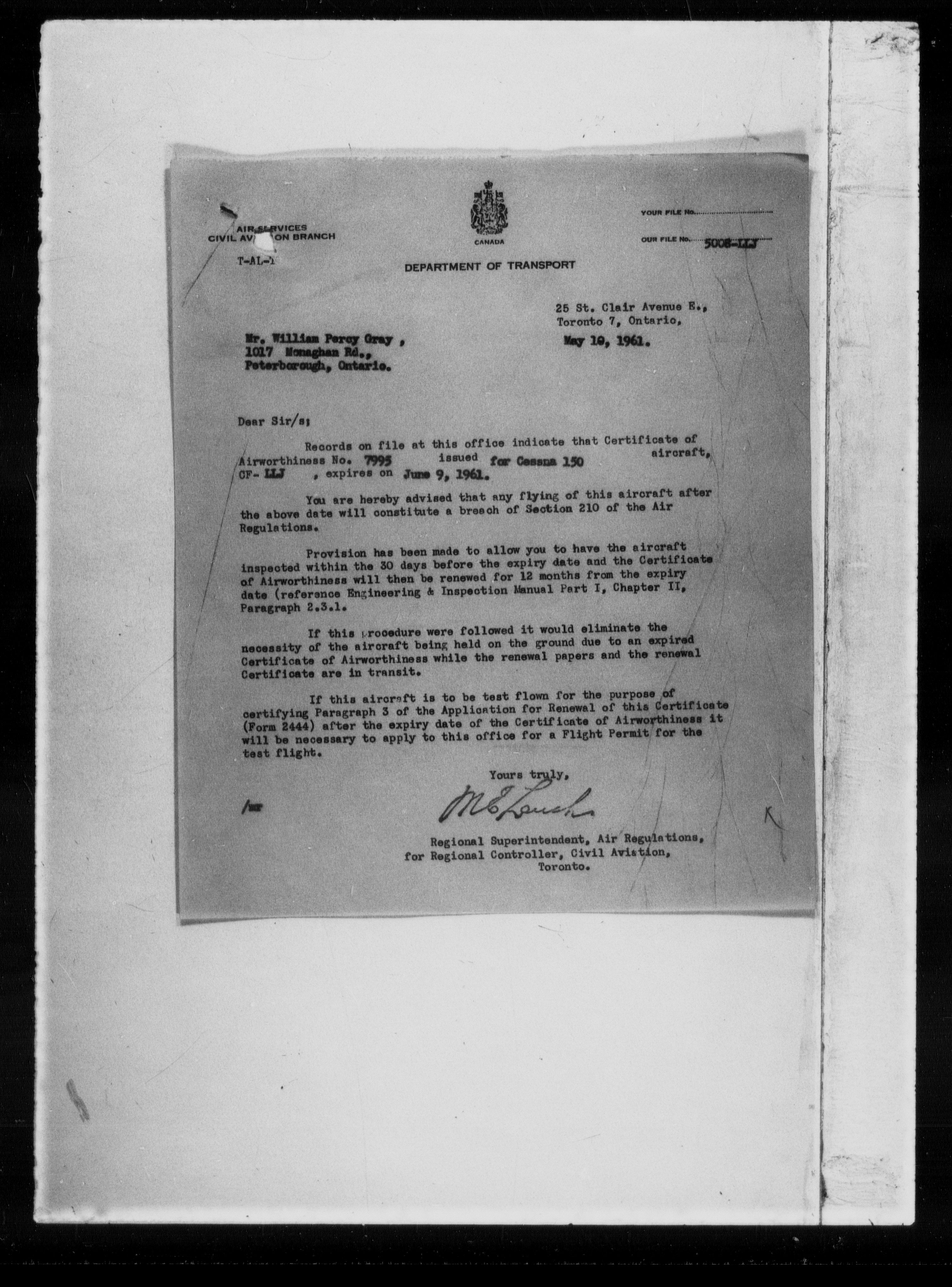 Department of Transport : Civil aircraft registration, inspection and operation files, 1920-1986 : T-7305