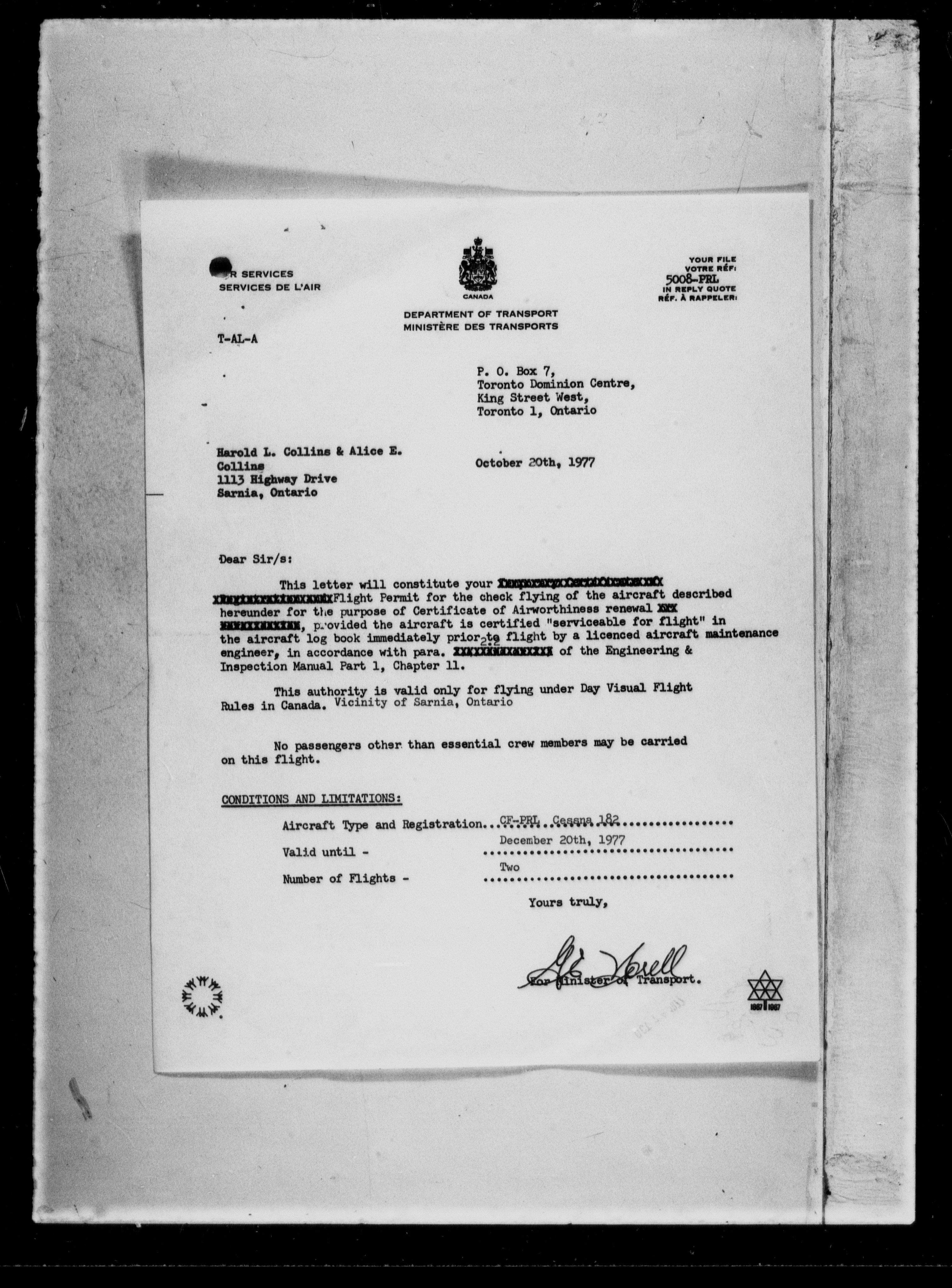 Department of Transport : Civil aircraft registration, inspection and operation files, block 5008, 1920-1986 - 7306