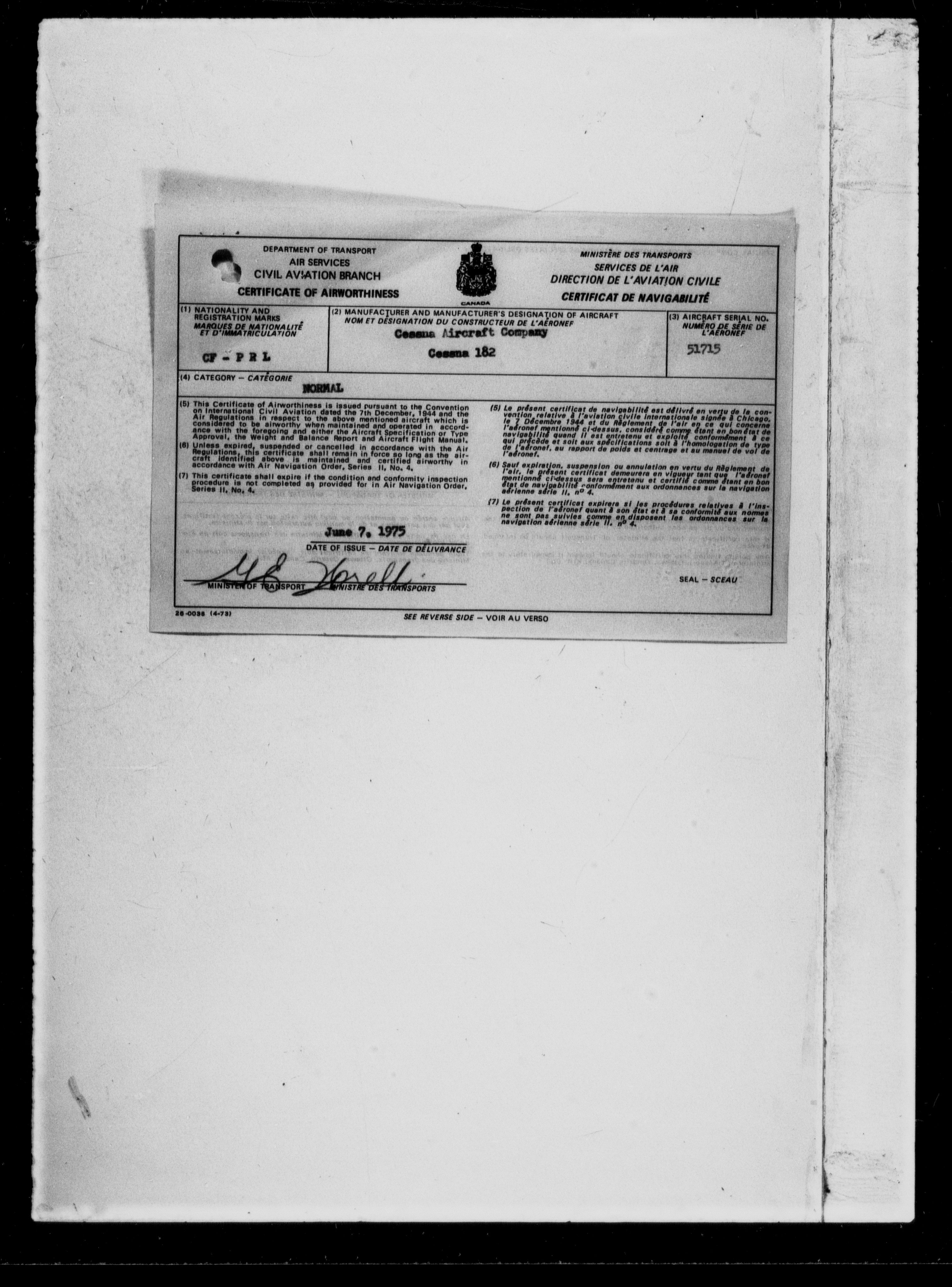 Department of Transport : Civil aircraft registration, inspection and operation files, 1920-1986 : T-7306