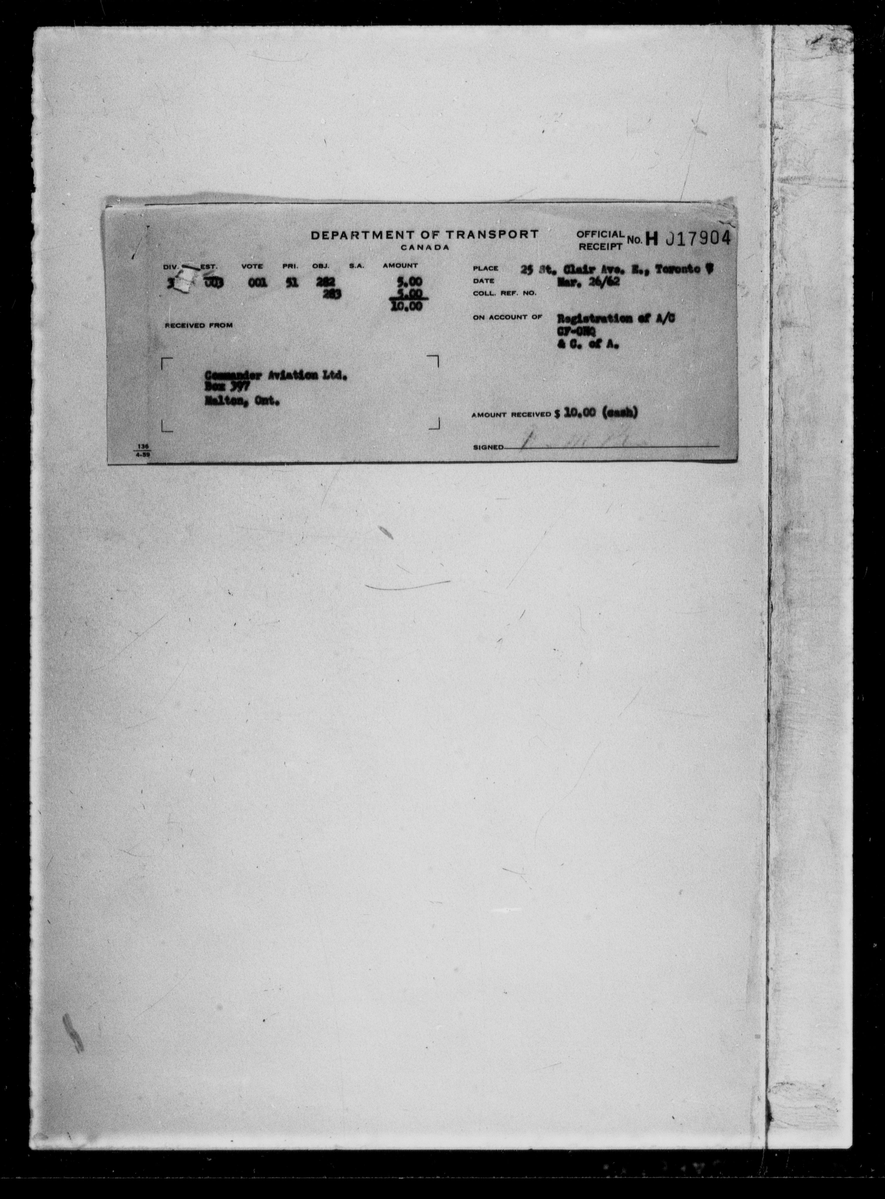Department of Transport : Civil aircraft registration, inspection and operation files, block 5008, 1920-1986 - 7306