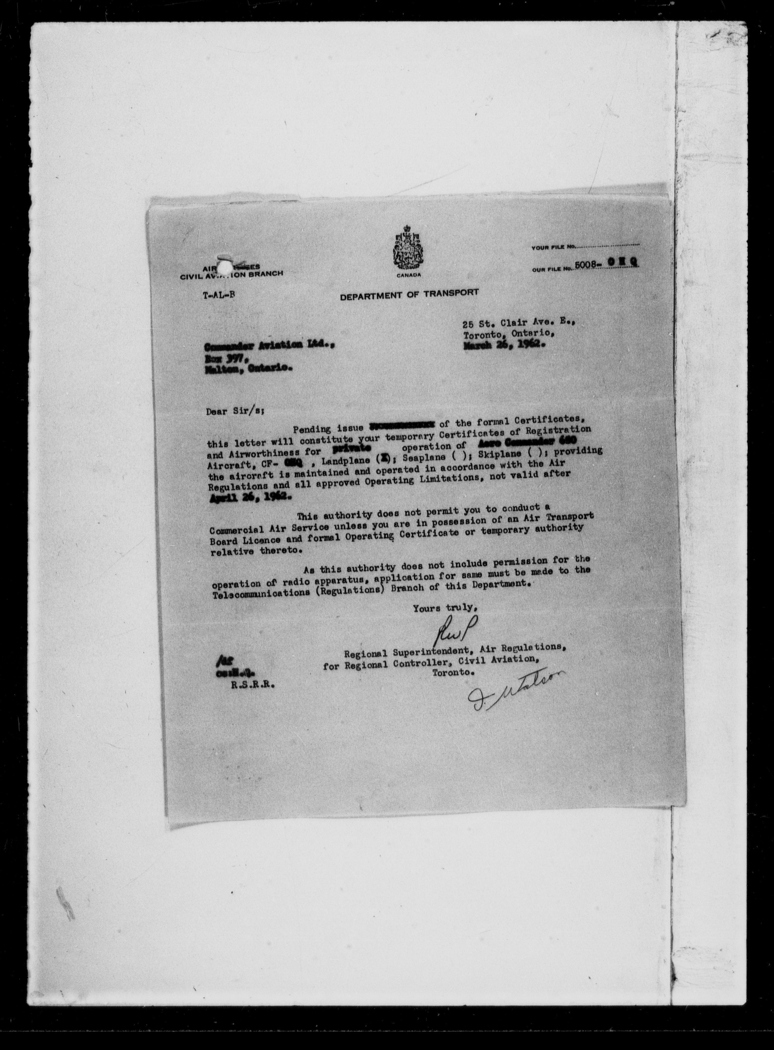 Department of Transport : Civil aircraft registration, inspection and operation files, block 5008, 1920-1986 - 7306
